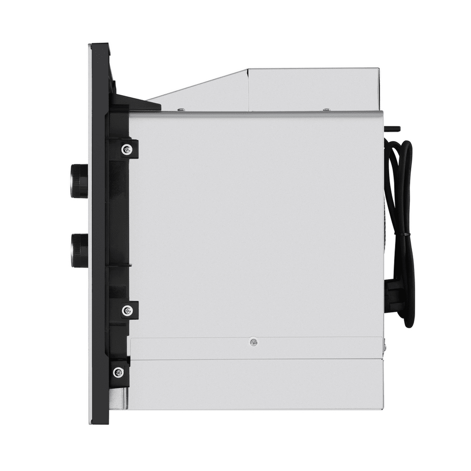 Встраиваемая микроволновая печь мощностью 1250 Вт выполнена из нержавеющей стали и оснащена высококачественным магнетроном производства Южной Кореи. Передняя панель матового черного цвета выполнена из стекла. Классическая ширина 60 см позволяет поместить ее в любой кухне.