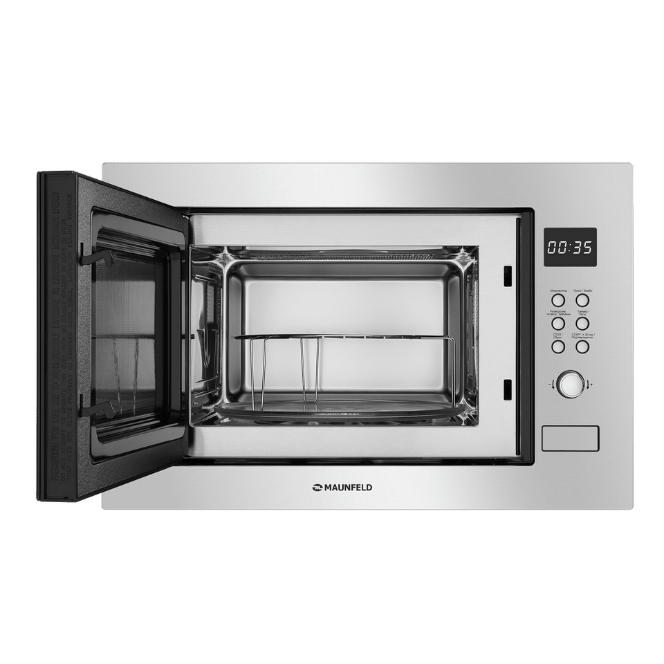 Встраиваемая микроволновая печь выполнена из нержавеющей стали и оснащена высококачественным магнетроном производства Южной Кореи. Фасад двери черного цвета выполнена из закаленного стекла. Классическая ширина 60 см позволяет поместить ее в любой кухне.