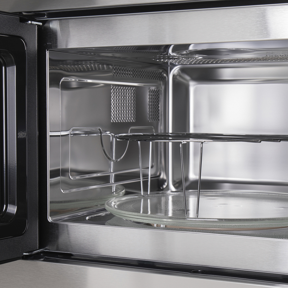 Внутренняя камера имеет увеличенный объем 25 л и сделана из нержавеющей стали толщиной 0,9 мм, обладающей высоким показателем износостойкости. Внутри камеры установлены кварцевый гриль, вращающееся кольцо со стеклянным столиком диаметром 315 мм и галогеновое освещение.