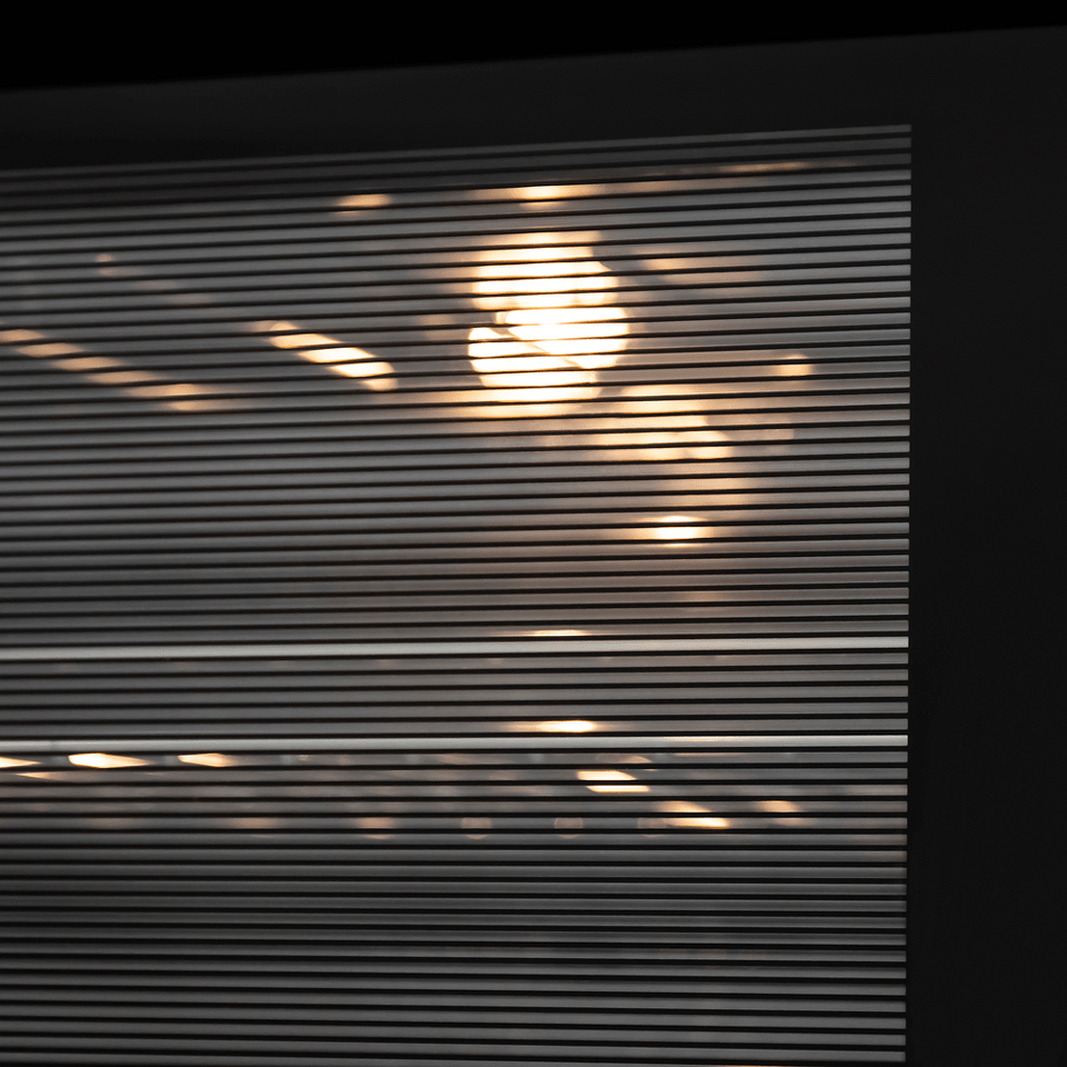 Трамп-линии нанесены на внутреннем стекле для создания визуального эффекта непрозрачности фасада: при выключенном освещении не видно посуду, находящуюся внутри духовой камеры, а при включенном освещении можно в деталях рассмотреть весь процесс готовки.