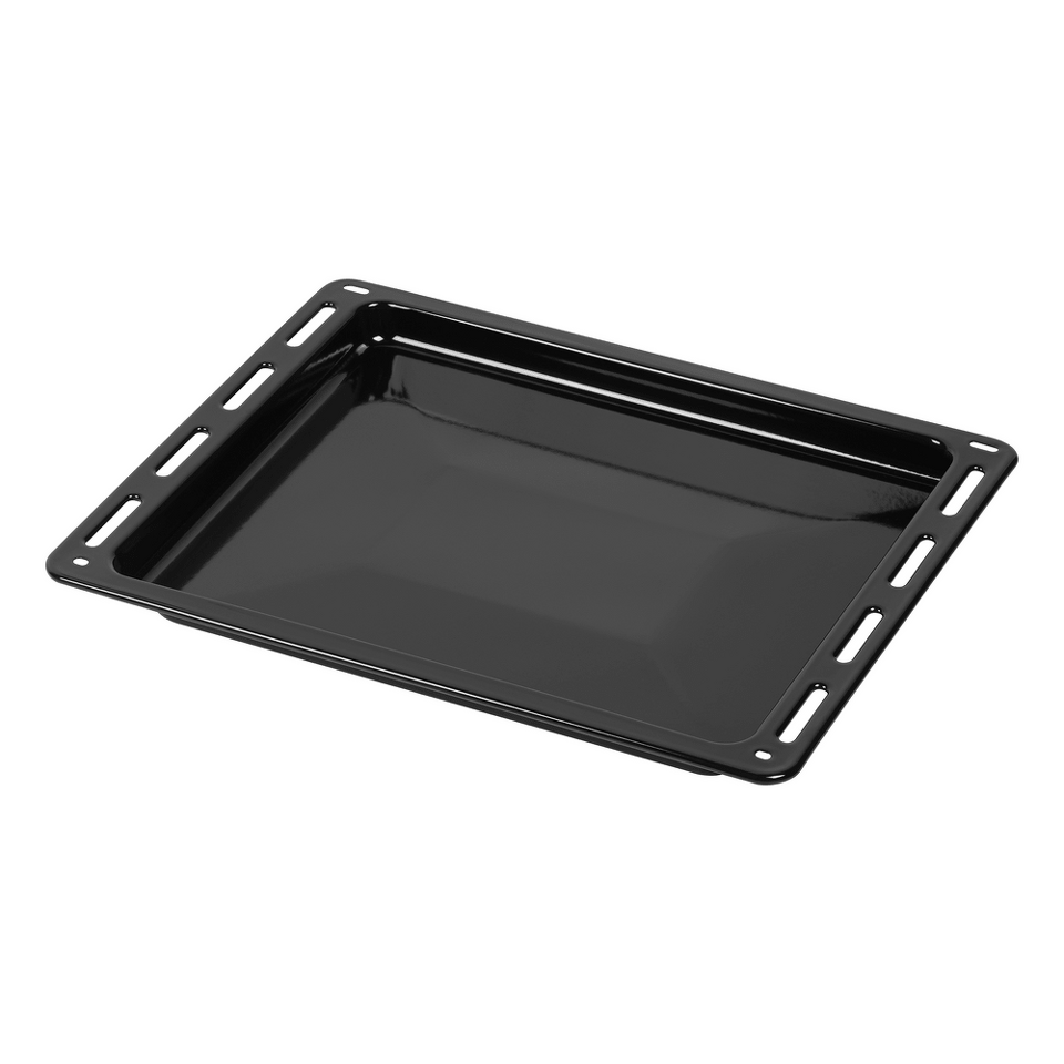 Наличие глубокого противня позволяет увеличить «полезный объём» духового шкафа. Высокие бортики глубокого противня не дают жиру разбрызгиваться и позволяют дольше сохранить блюдо горячим.