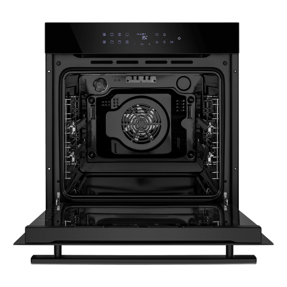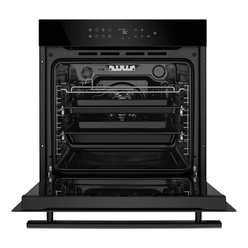 Стильный электрический встраиваемый духовой шкаф с фасадом из высококачественного жаропрочного стекла.