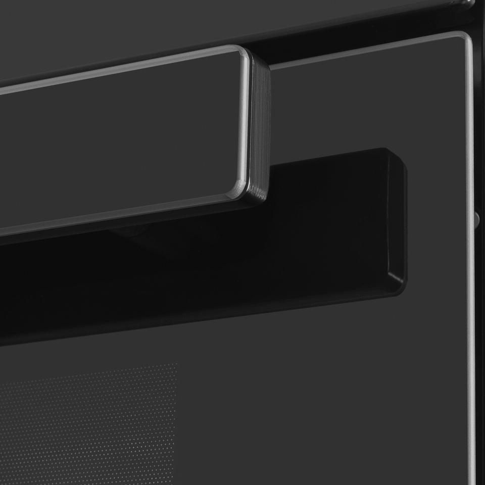 Дизайнерская полнотелая ручка из закалённого стекла имеет низкую теплопроводность, высокую прочность и стильный вид. Духовые шкафы с такой ручкой идеально впишутся в дизайн любой кухни.