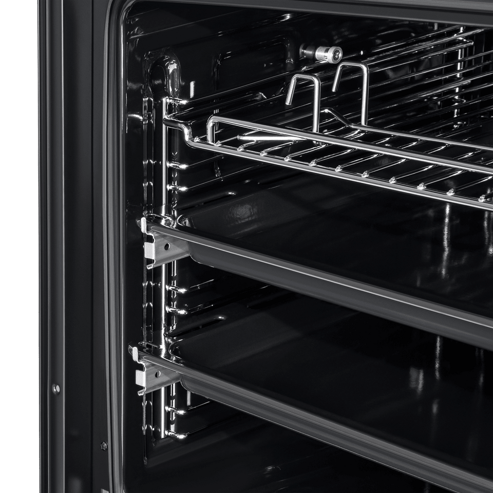 Объем 76 л при стандартных размерах 60 см позволяет готовить одновременно несколько блюд, разместив решетку или противень на одном из 6 уровней боковых направляющих. Два уровня оснащены удобными телескопическими направляющими. Внутреннее покрытие камеры выполнено из специальной легкоочищающейся эмали черного цвета.