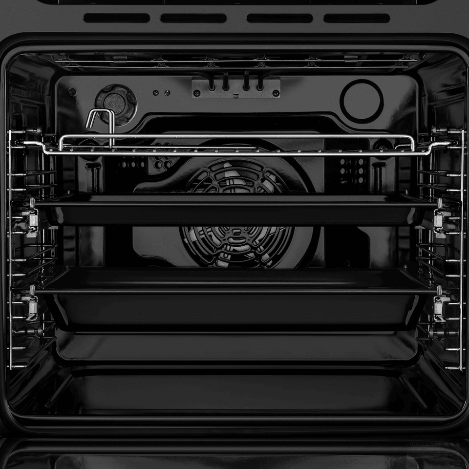 Мощный вентилятор, который обеспечивает непрерывную циркуляцию холодного воздуха между рабочей камерой и корпусом духового шкафа, надёжно защищает рядом стоящую мебель от нагрева и деформаций.