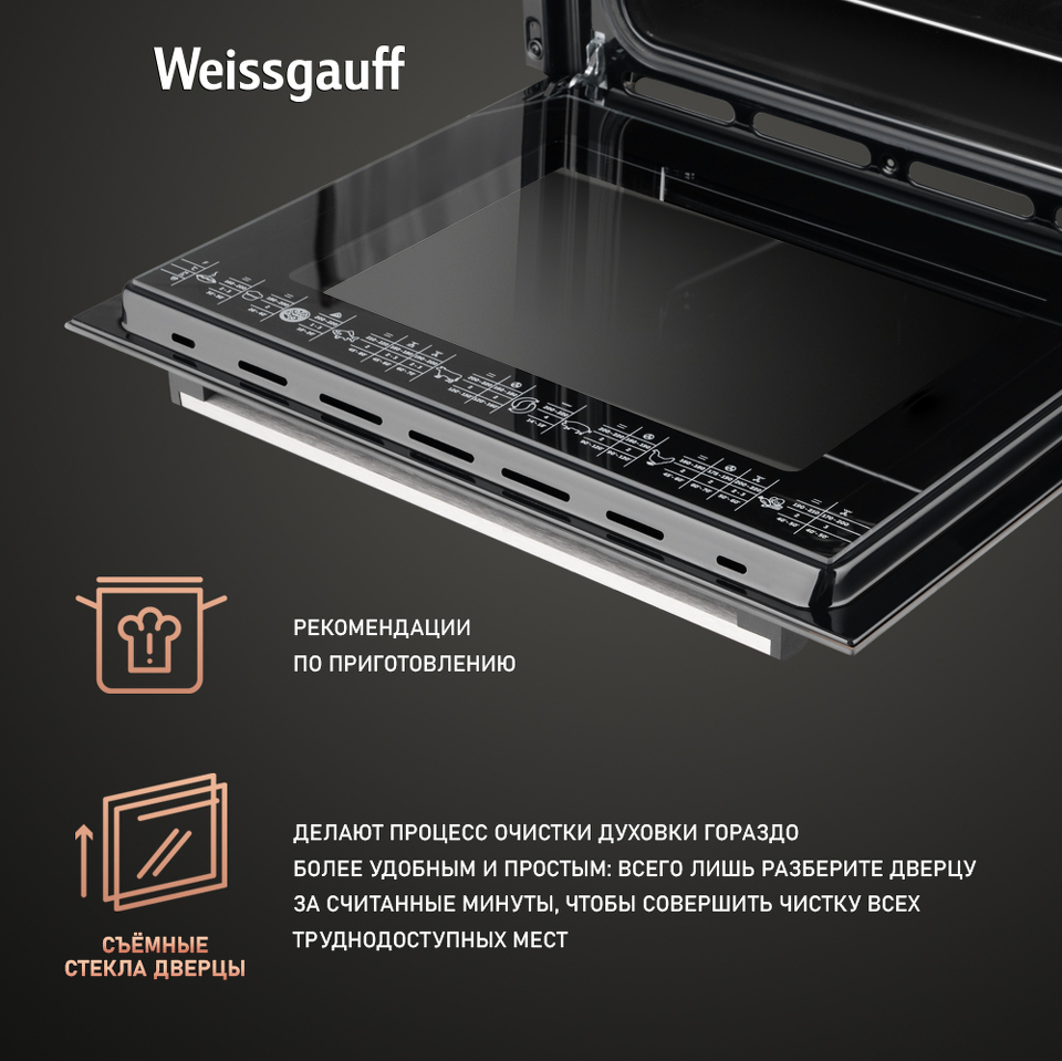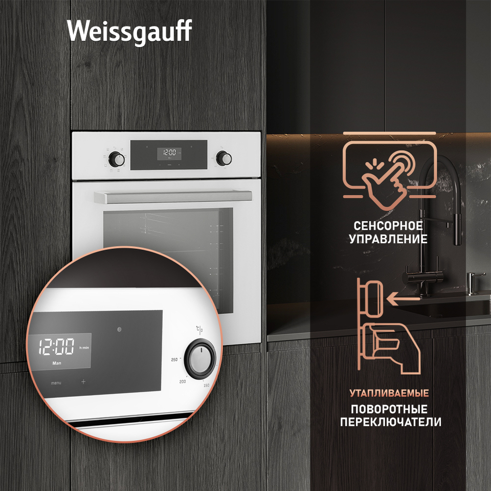 Удобный дисплей с сенсорным управлением - это настоящая гордость Weissgauff, ведь он не только является интуитивно понятным, но и великолепно реагирует на прикосновения с первого нажатия даже в том случае, если руки влажные или прохладные.