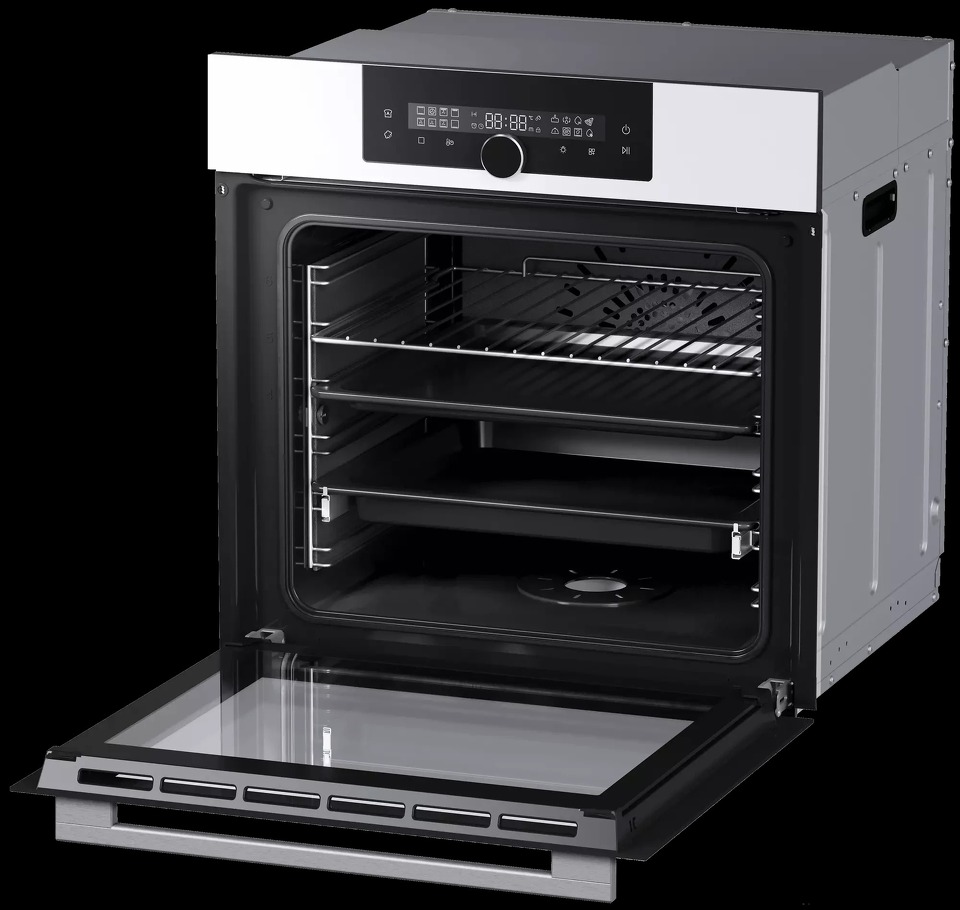 Духовой шкаф поддерживает регулировку температуры нагрева от 30 до 300 °C, что актуально при расстойке теста. Тройное остекление дверцы избавляет от ожогов. Режим конвекции обеспечивает равномерное распределение потоков теплого воздуха для хрустящей золотистой корочки на мясе или птице.
