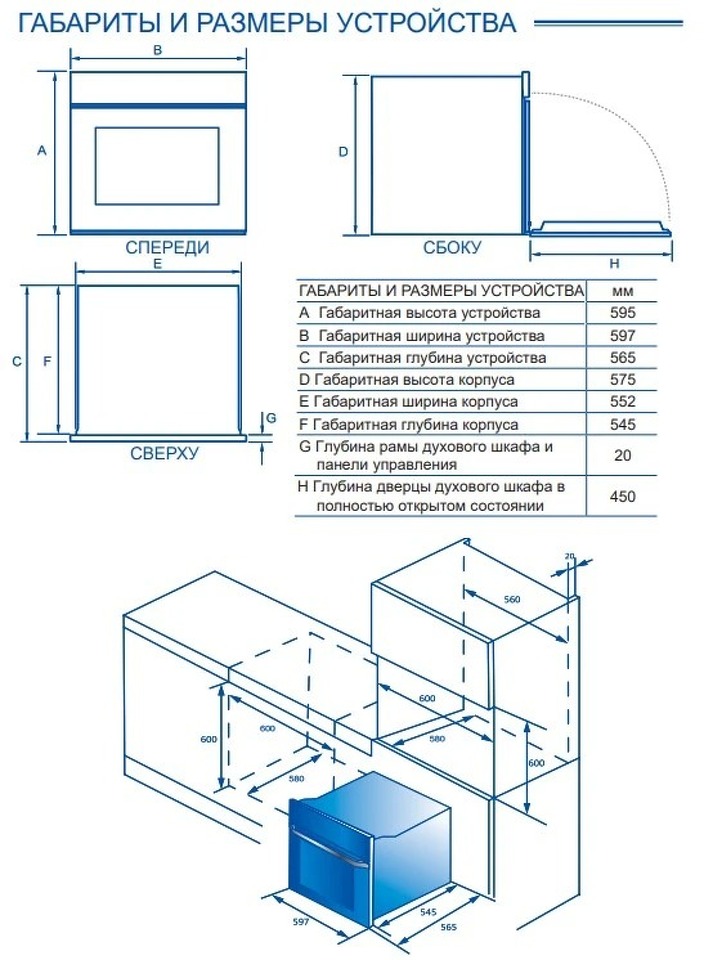 Размер духового шкафа 60см
