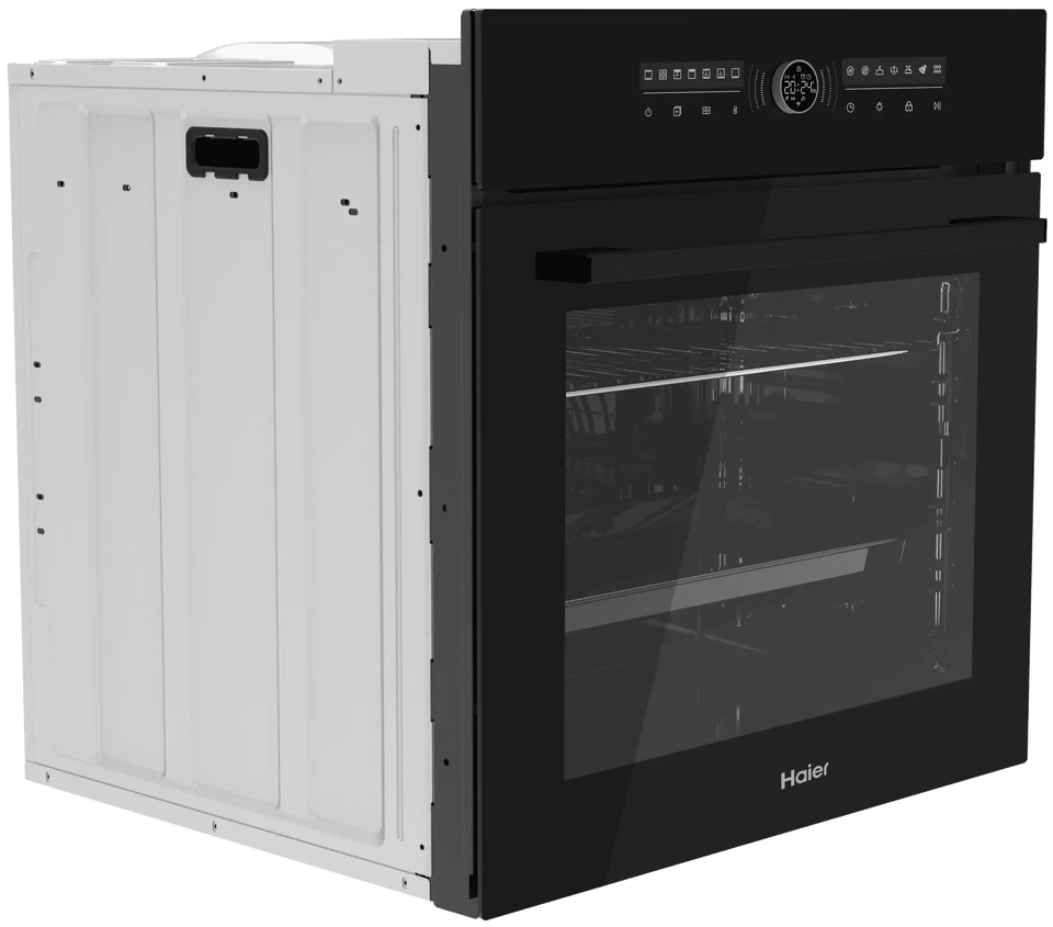 Духовой шкаф HOX-FT5AMTB имеет обновленную систему управления: сенсорная панель добавляет удобства в уходе, а центральный поворотный переключатель, помимо своего расширенного функционала, оснащен LED дисплеем с индикацией статуса работы и декоративной динамической индикацией. Максимальная температура нагрева составляет 310 градусов. Духовой шкаф оборудован выдвижными телескопическими направляющими, функцией аква очистки и тройным остеклением дверцы, что делает использование и невероятно комфортным, и безопасным.