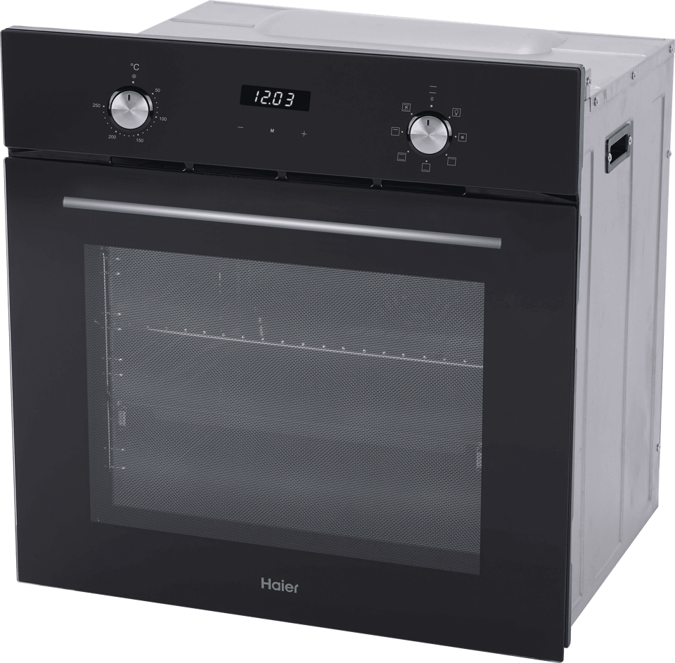 HAIER HOX-P06HGB отлично подойдет большим семьям или тем, кто часто принимает гостей — объём 76 литров позволяет приготовить сразу много вкусного. При этом дополнительное место на кухне не требуется — габариты у духовки стандартные. Комфортной эксплуатации служат 6 режимов нагрева — есть всё необходимое, чтобы следовать различным рецептам. Режим быстрого разогрева уменьшает время, за которое духовка разогревается до нужной температуры — продолжительность готовки, в целом, тоже уменьшается. На одном из уровней приготовления установлены телескопические направляющие для противней — это дополнительное удобство и безопасность. Всего здесь 6 уровней установки противней — можно готовить сразу на нескольких, продукты равномерно пропекутся и подрумянятся. Дверца духовки — с трехслойным остеклением: во время готовки минимизированы теплопотери, а наружное стекло почти не нагревается — нет риска случайно обжечься. В духовке есть подсветка, а стенки покрыты специальной эмалью, с которой легко очищаются различные загрязнения. Утапливаемые поворотные переключатели режимов нагрева и температуры на панели управления упрощают уход за духовкой — панель легко протереть. Кроме того, они защищают от случайного изменения настроек во время работы духовки. HAIER HOX-P06HGB — современный высокотехнологичный духовой шкаф, с которым вы полюбите готовить.