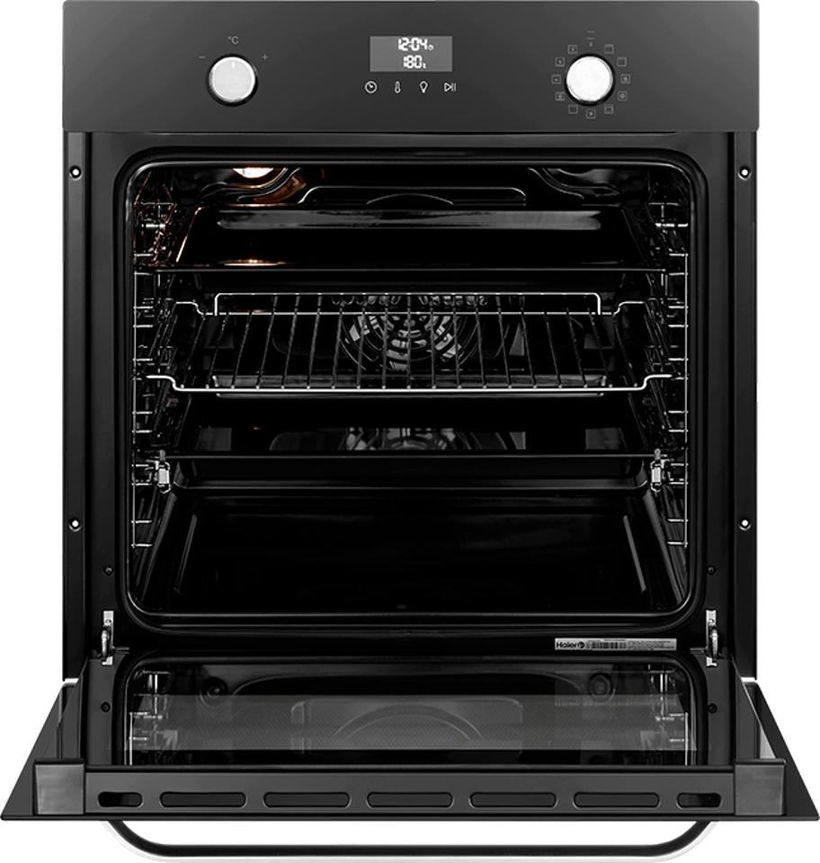 HAIER HOX-P11HGB — это вместительный духовой шкаф объёмом 76 л. При этом его габариты не увеличены — это классическая духовка шириной 60 см, которая подходит для большинства кухонь. Она оптимальна для использования в больших семьях и выручит в тех случаях, когда ожидается много гостей — за раз в ней можно приготовить сразу много вкусного. Здесь целых 6 уровней установки противней — можно одновременно готовить разные блюда на нескольких из них. Одиннадцать режимов нагрева дают максимальный простор для кулинарных экспериментов: помимо классического нагрева сверху и снизу, конвекции, гриля и комбинированных режимов, есть, к примеру, еще режим расстойки теста — для его равномерного подъёма поддерживается температура 30-35 градусов. За управление отвечают поворотные переключатели с подсветкой — они выглядят стильно, облегчают уход за духовкой и не дают случайно изменить настройки её работы. Внутри духовки подсветка, а на стенках — эмаль лёгкой очистки, с которой не сложно удаляются различные загрязнения. HAIER HOX-P11HGB — современный вместительный духовой шкаф, с которым готовка проще и приятней.