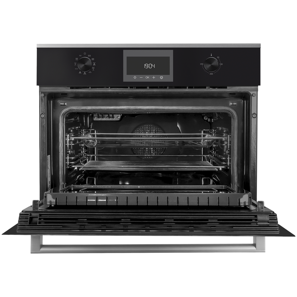 Кольцевой нагревательный элемент, установленный в задней стенке духового шкафа вокруг вентилятора, гарантирует отличный результат при приготовлении разных блюд на нескольких уровнях без смешивания вкусов и запахов.
