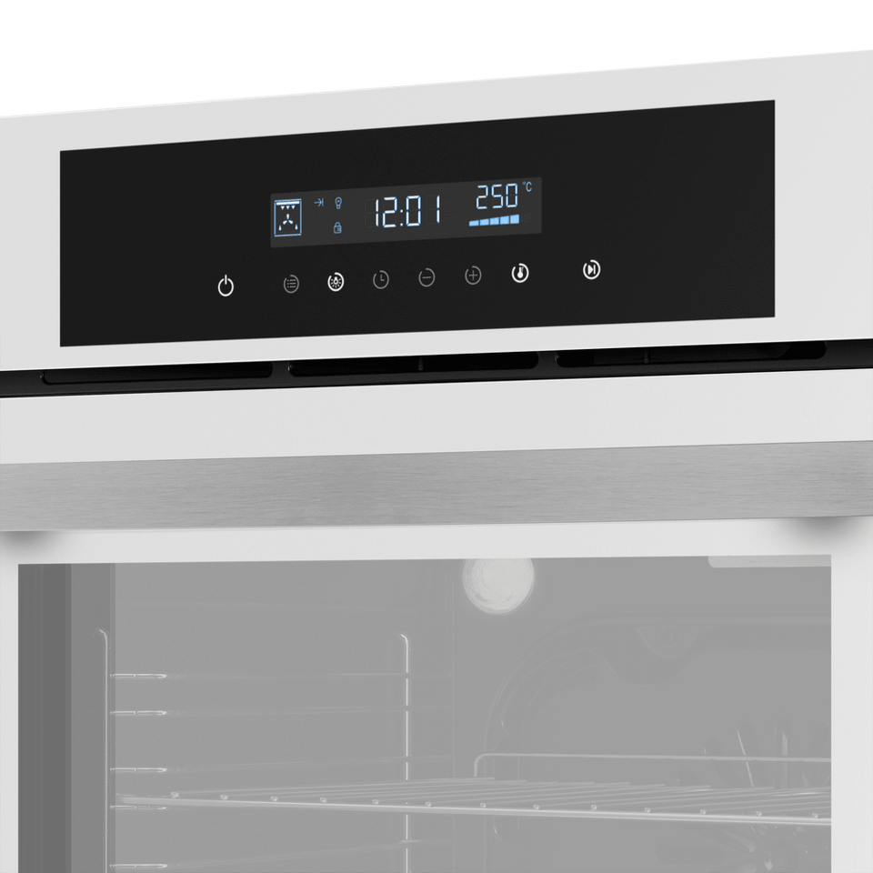 Объем 60 л при стандартных размерах 60 см позволяет готовить одновременно несколько блюд, разместив решетку или противень на одном из 5 уровней боковых направляющих.