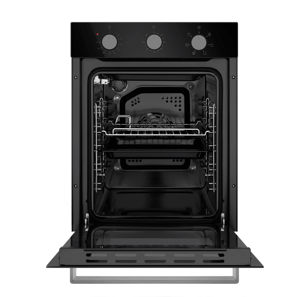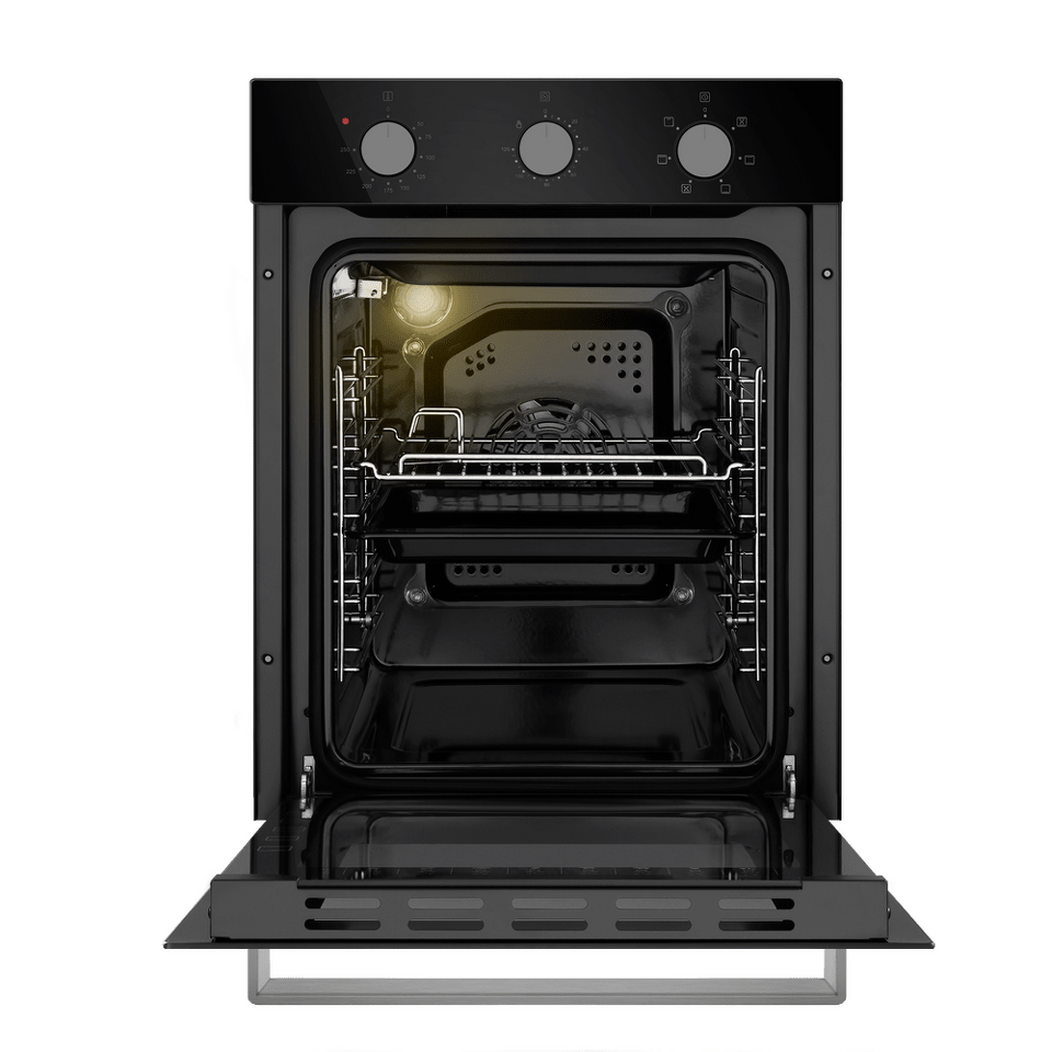 Компактный электрический встраиваемый духовой шкаф объемом 51 л и шириной всего 45 см позволяет готовить ваши любимые блюда, разместив решетку или противень на одном из 5 уровней боковых направляющих. Внутреннее покрытие камеры выполнено из специальной легкоочищающейся эмали черного цвета.