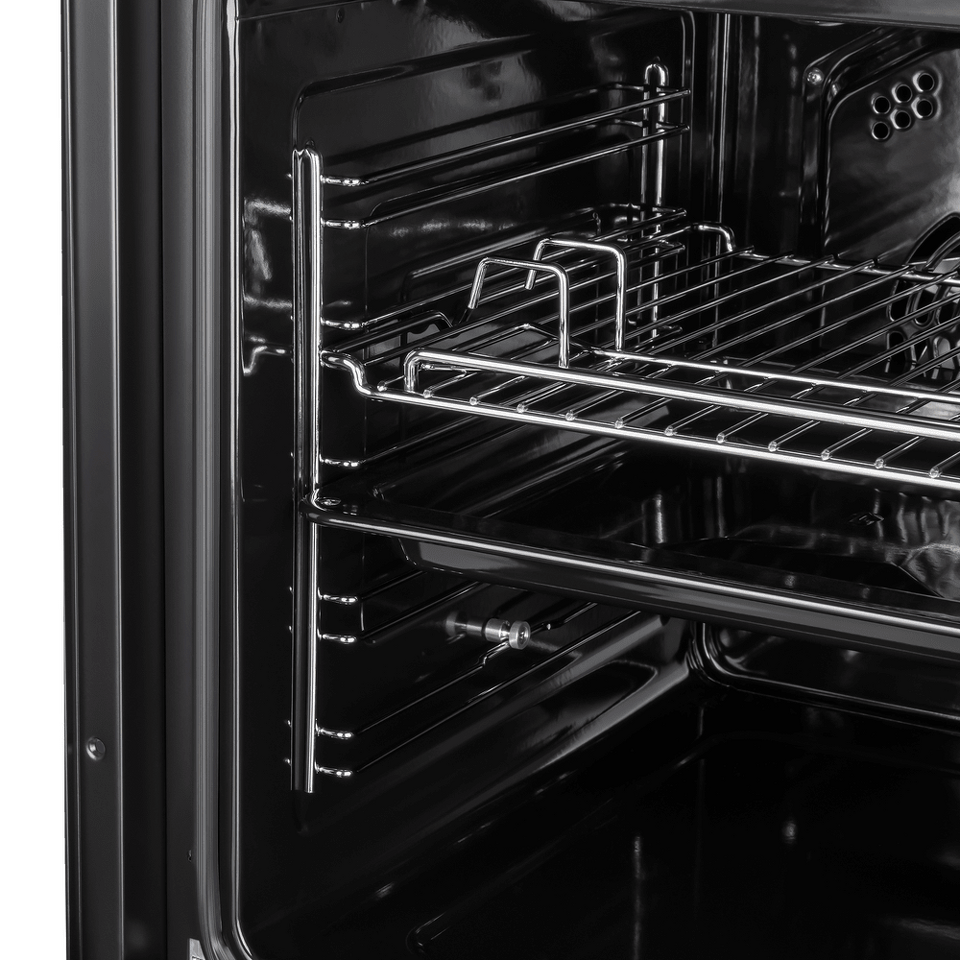Фронтальная панель духовки сделана из высококачественного жаропрочного тонированного стекла черного цвета. Цельнометаллическая ручка дверцы и ручки управления остаются холодными в процессе готовки.
