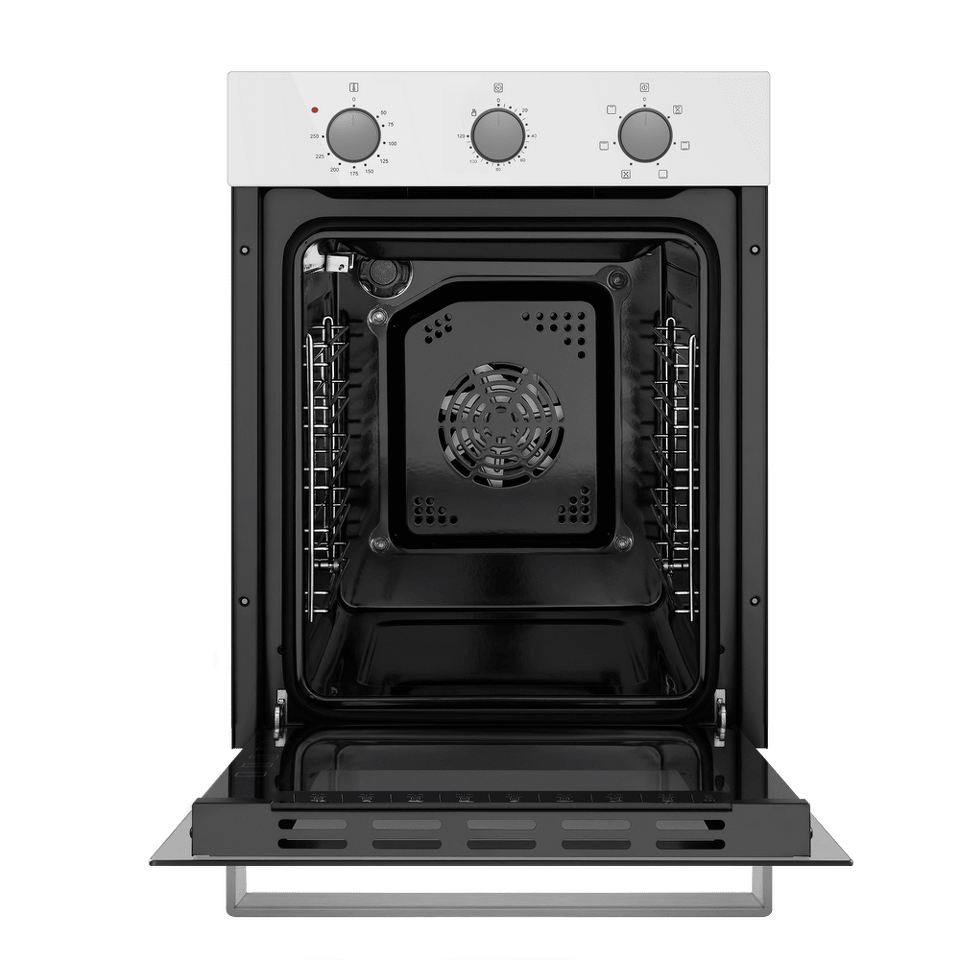 Механическое управление работой духовки осуществляется утапливаемыми поворотными ручками. Можно установить таймер (до 120 мин), выбрать температуру (50°-250°C) и один из 6 режимов работы: традиционный нагрев, большой гриль, конвекция с нижним нагревом, нижний нагрев, конвекционный нагрев, малый гриль.