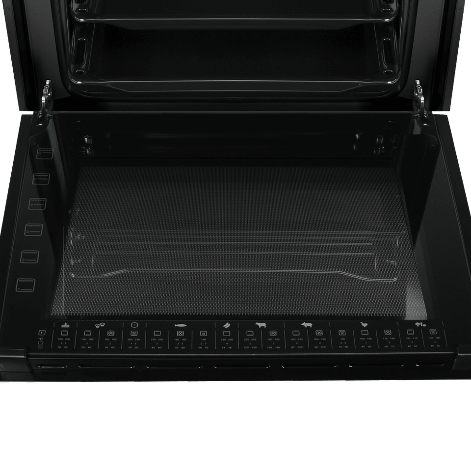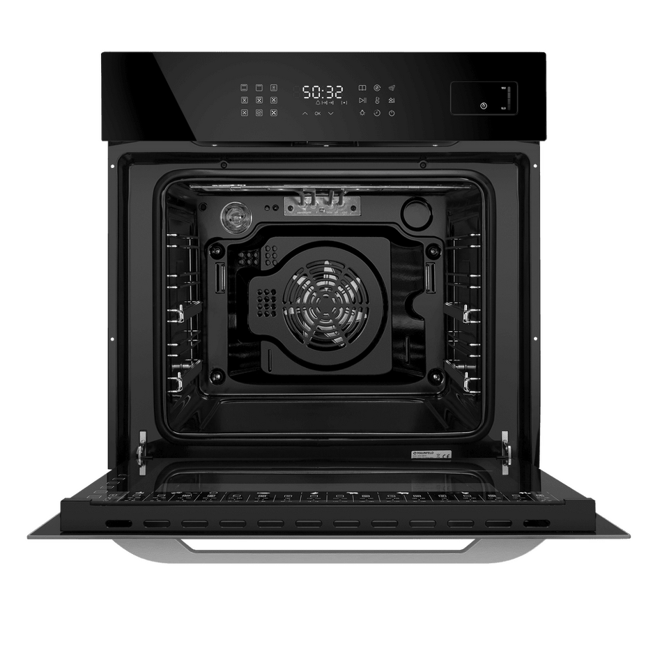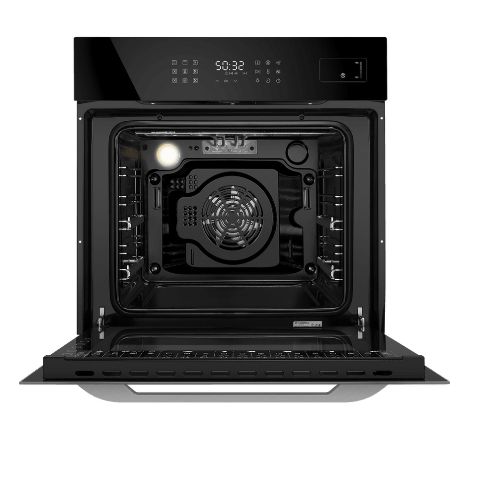 Стекло с тонировкой позволяет создавать визуальный эффект однородности стекла, при выключенном освещение внутреннее содержимое духовой камеры не видно, будь то сковородки, противни т.д, а при включенном освещение весь процесс приготовления виден без помех.