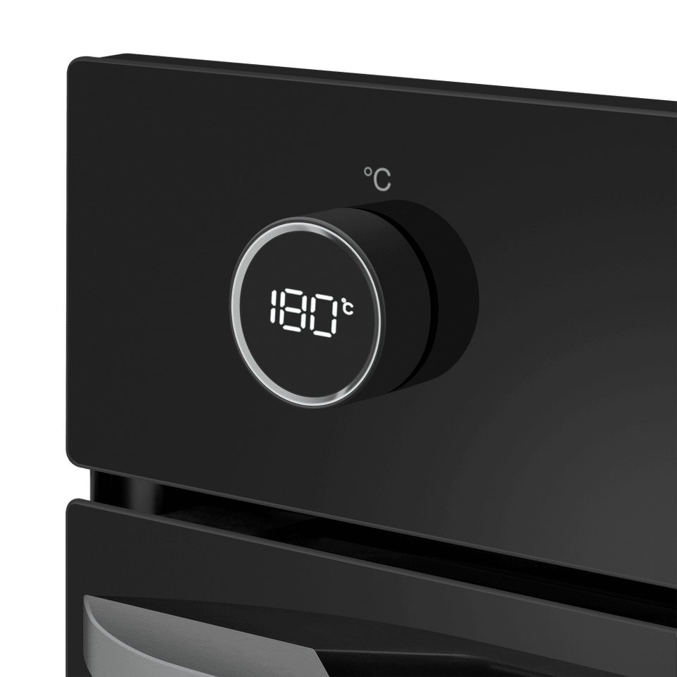 Простота управления, легкий уход за духовкой, дополнительная безопасность и защита от случайного изменения настроек — все это благодаря поворотными переключателями, которые не только обладают лаконичным дизайном, но и имеют встроенный дисплей для отображения температуры и режима приготовления.