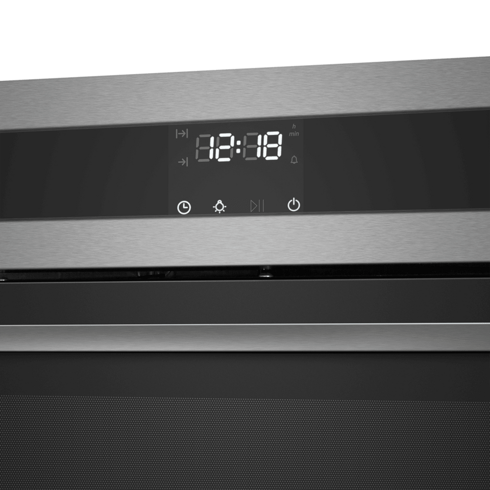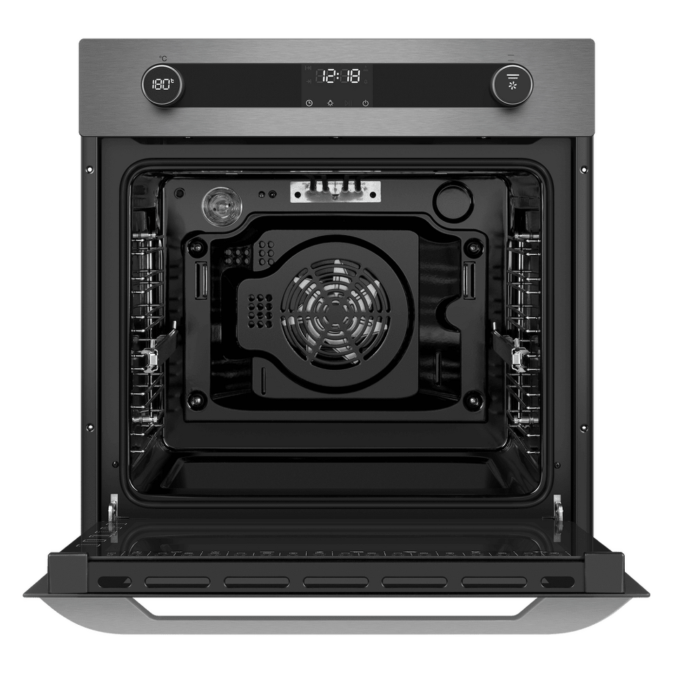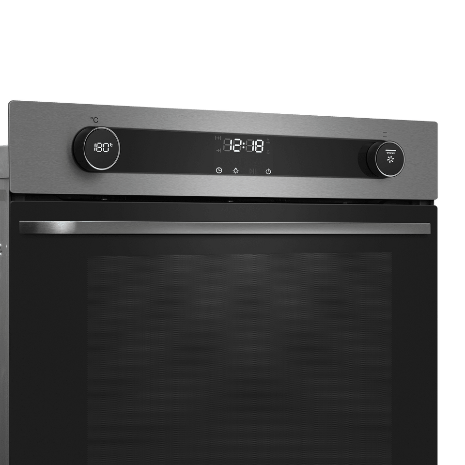 Простота управления, легкий уход за духовкой, дополнительная безопасность и защита от случайного изменения настроек — все это благодаря поворотными переключателями, которые не только обладают лаконичным дизайном, но и имеют встроенный дисплей для отображения температуры и режима приготовления.