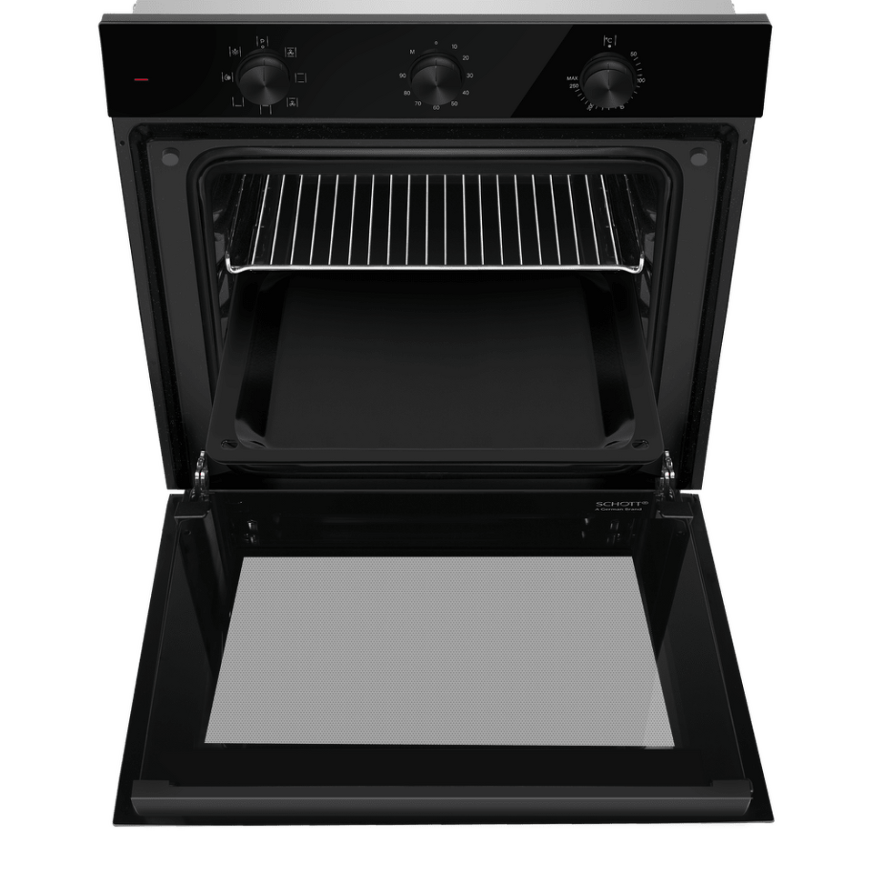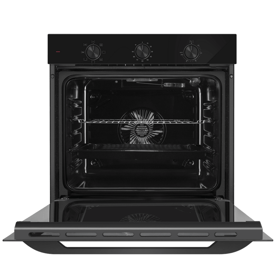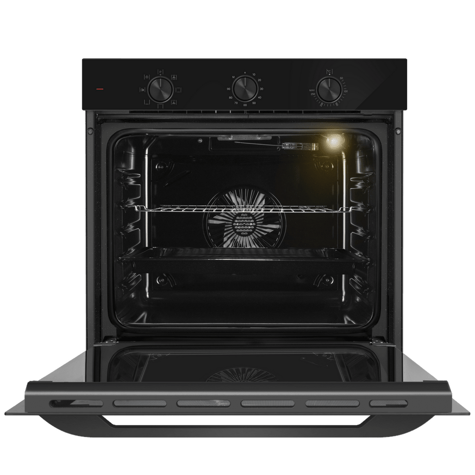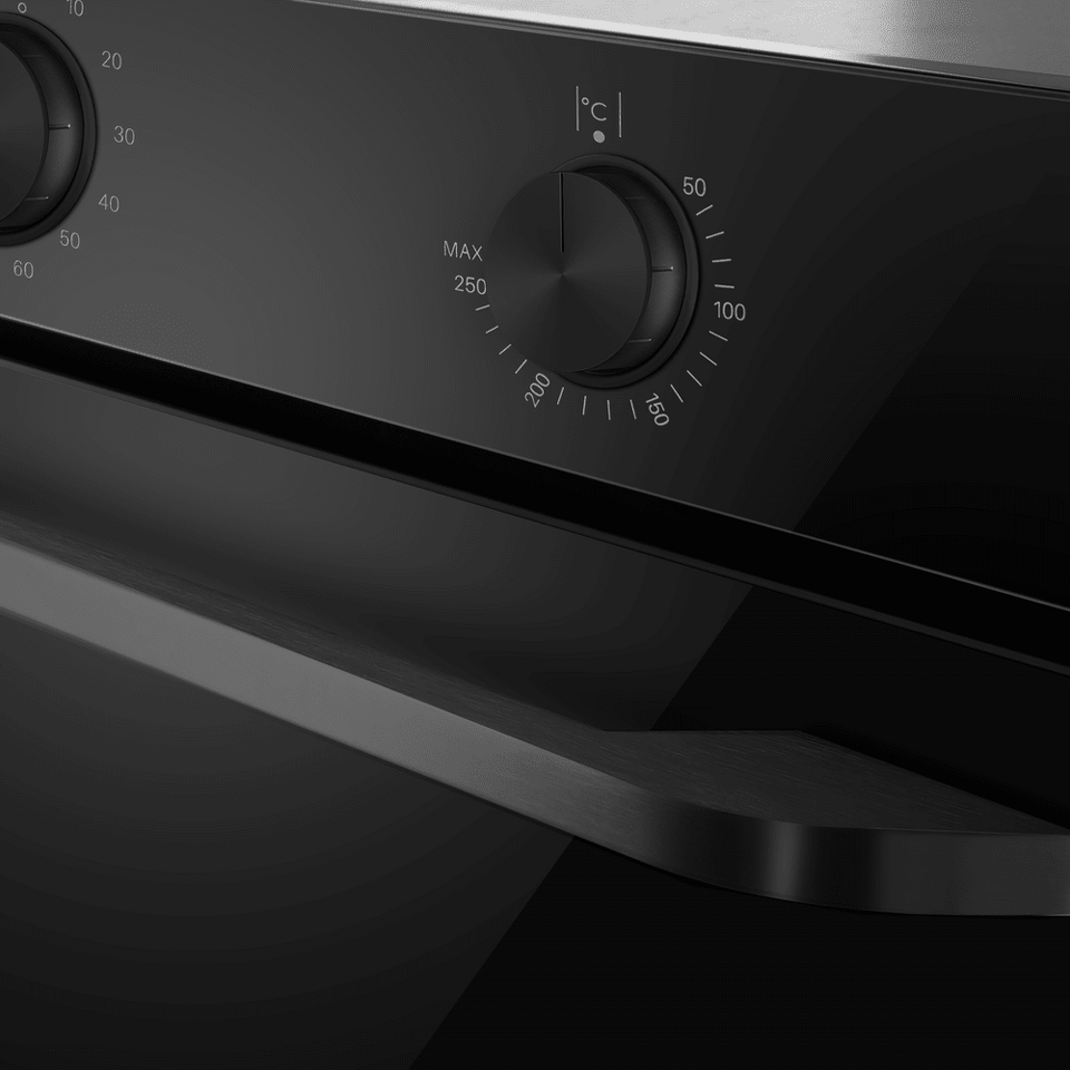 Управлять духовкой просто – механические переключатели с утапливаемыми ручками надежны и интуитивно понятны. Встроенный таймер поможет не пропустить момент готовности блюда. А когда нужно проверить, как идёт процесс, достаточно бросить взгляд через тройное стекло дверцы – мощная подсветка прекрасно освещает всю камеру.