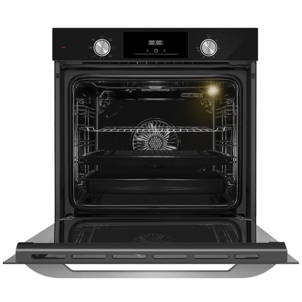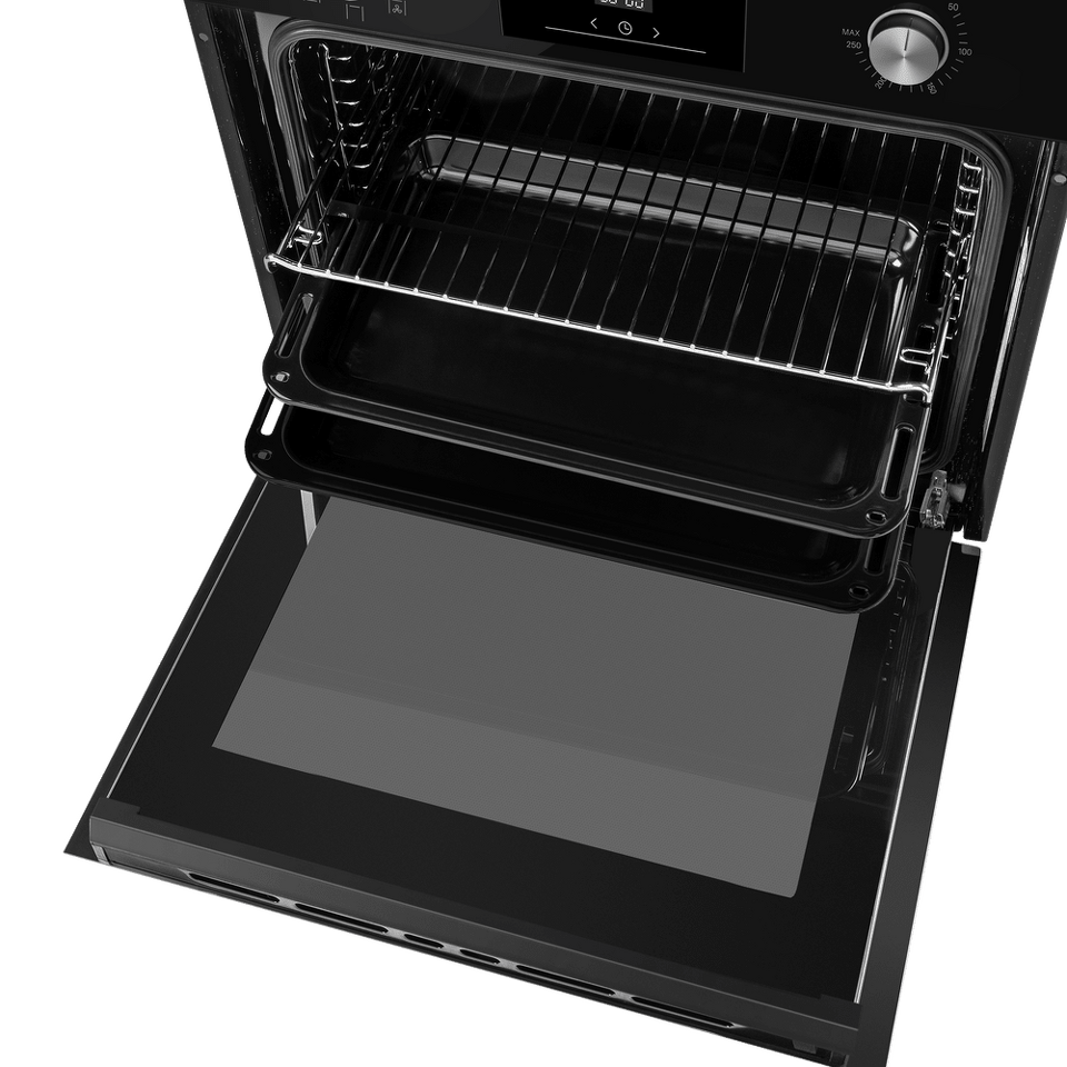 Управлять духовкой просто – механические утапливаемые переключатели в сочетании с современным сенсорным управлением обеспечивают комфортную и наиболее точную регулировку параметров приготовления. Встроенный таймер поможет не пропустить момент готовности блюда. А когда нужно проверить, как идёт процесс, достаточно бросить взгляд через тройное стекло дверцы – мощная подсветка прекрасно освещает всю камеру.
