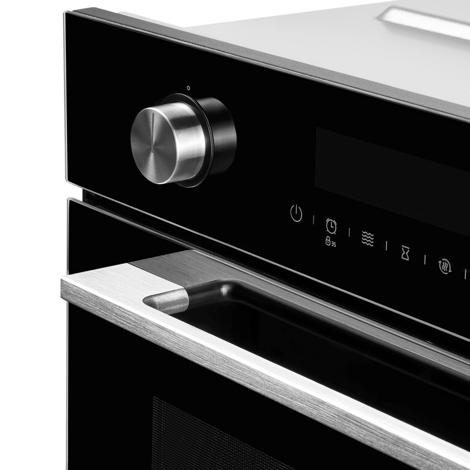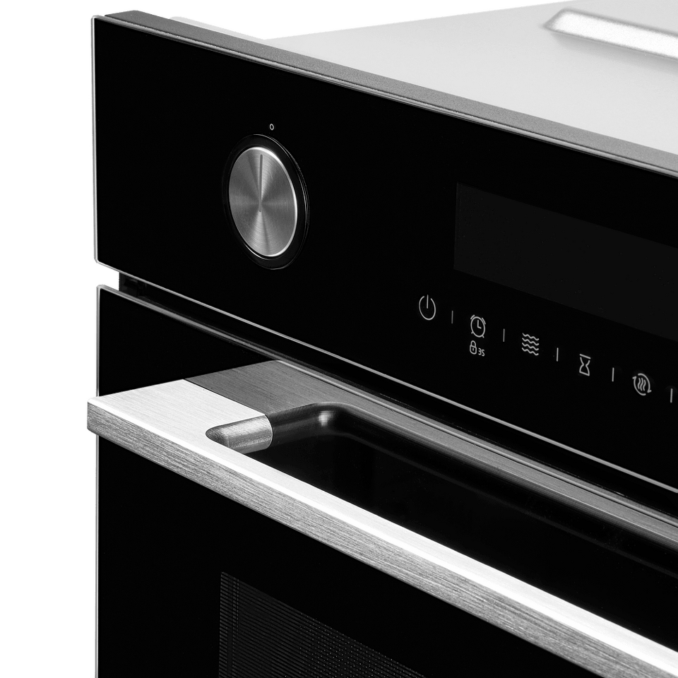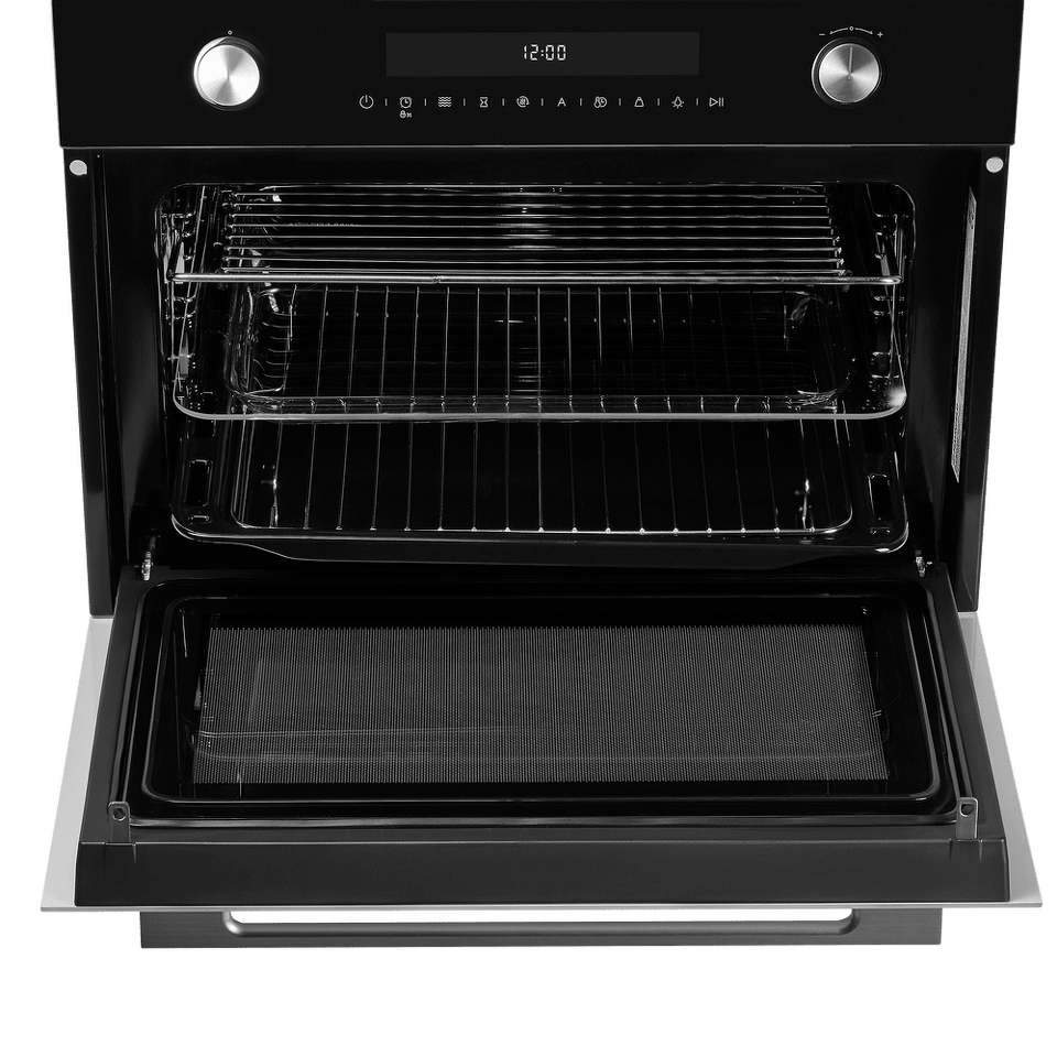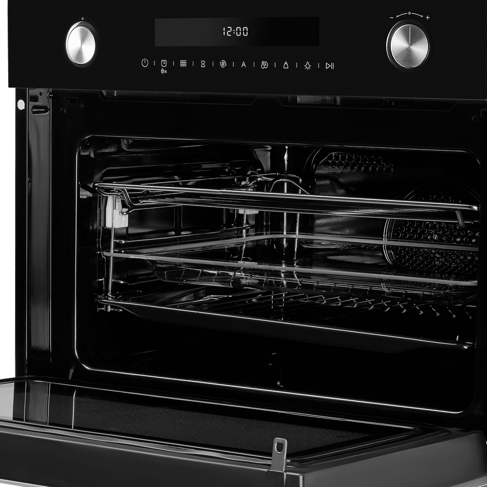 Компактный духовой шкаф с 15 режимами приготовления: полный функционал в компактном исполнении, с поворотными ручками PUSH PULL и сенсорными клавишами.