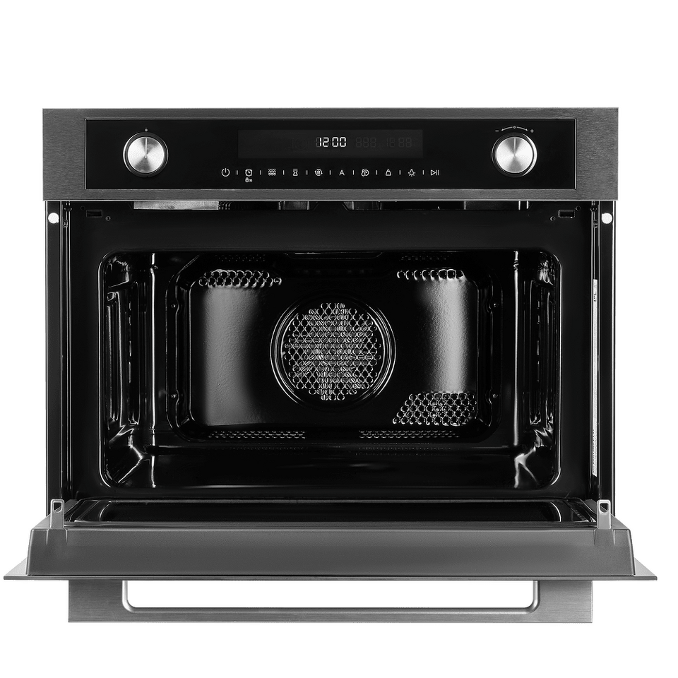 Компактный духовой шкаф с 15 режимами приготовления: полный функционал в компактном исполнении, с поворотными ручками PUSH PULL и сенсорными клавишами.
