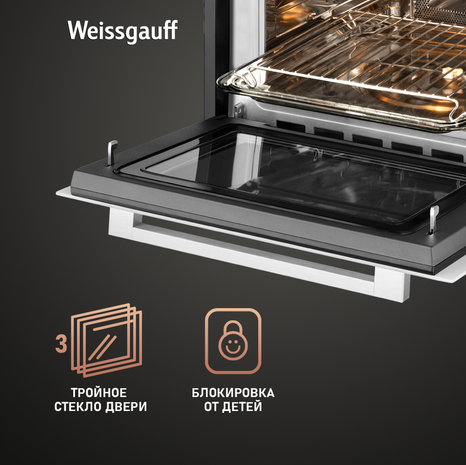Удобный сенсорный дисплей с крупной индикацией - это настоящая гордость Weissgauff, ведь он не только является интуитивно понятным, но и великолепно реагирует на прикосновения с первого нажатия даже в том случае, если руки влажные или прохладные