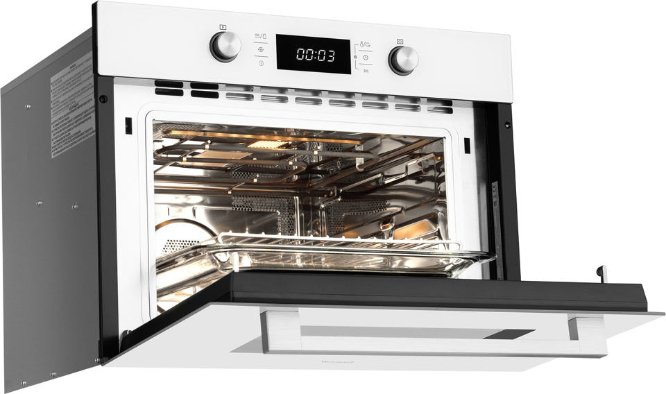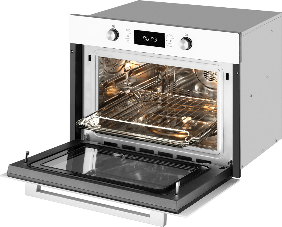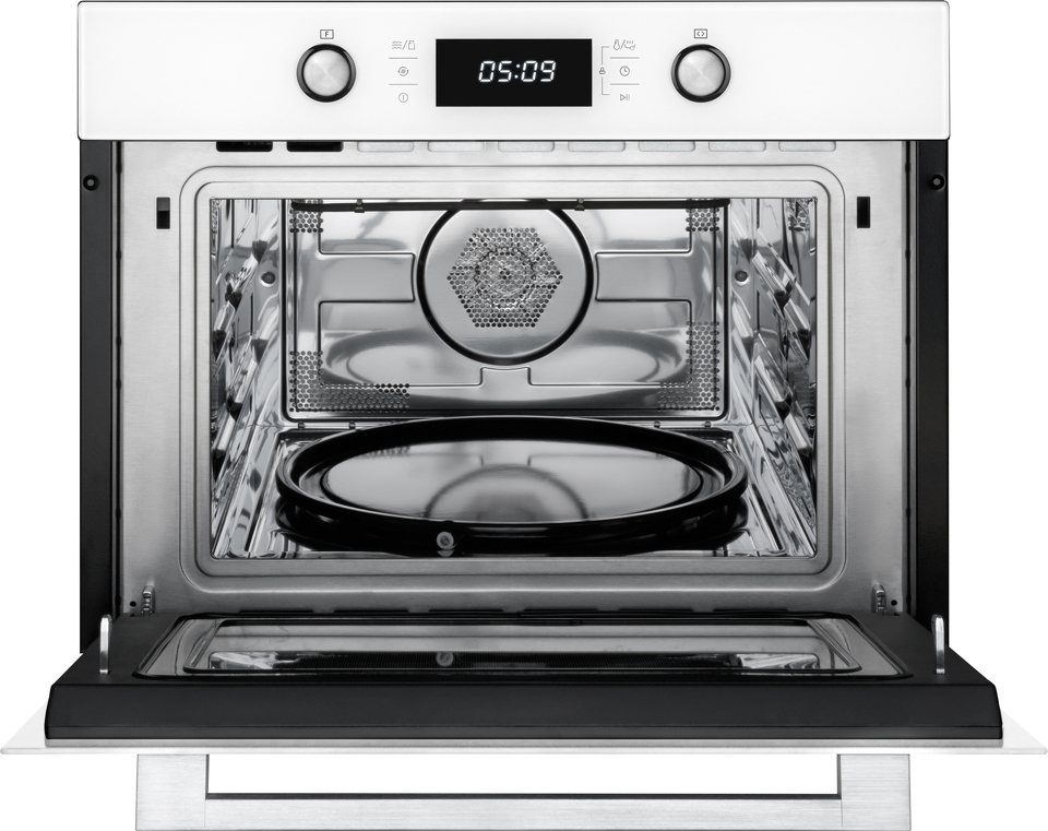 Встраиваемый компактный духовой шкаф с микроволнами , который сочетает в себе сразу два полноценных устройства: духовой шкаф с конвекцией и грилем, а также микроволновую печь с отдельными набором настроек и возможностью использования комбинированного режима.