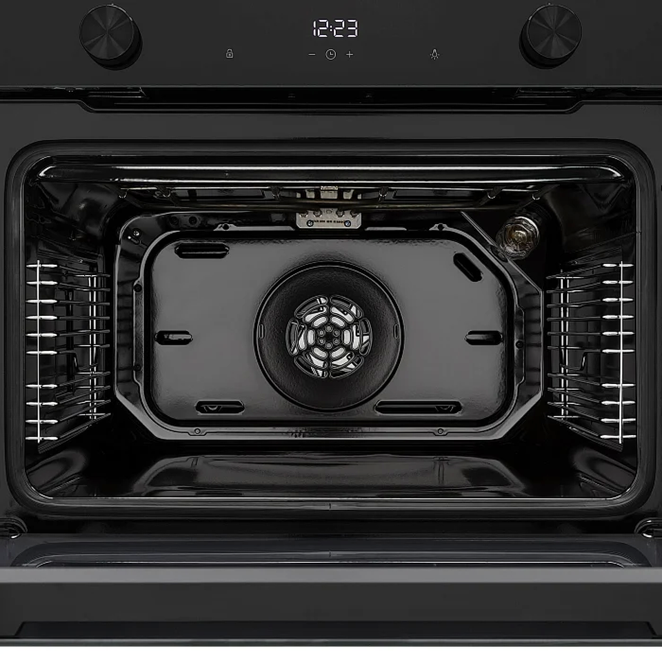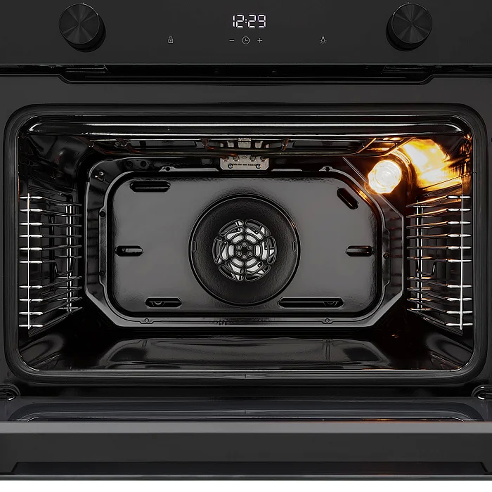 Компактный духовой шкаф PARABEL высотой встраивания 45 см выполнен из черного закаленного стекла с черной фурнитурой, что отлично подойдет для кухонь в стиле минимализм. Объем духовки составляет 50 л, благодаря чему можно готовить несколько блюд на разных уровнях одновременно. Модель оснащена 10 режимами работы, включая 3D-конвекцию, разморозку и электрический гриль, а также сенсорным дисплеем с электронным многофункциональным таймером и часами. Разнообразие программ и широкий диапазон температур нагрева 50-260°С позволяют воплотить самые смелые кулинарные идеи. Для быстрого и простого ухода за духовым шкафом предусмотрены функция очистки паром Aqua Clean, съемная разборная дверца и эмаль легкой очистки Easy Clean. В базовую комплектацию модели входит глубокий противень, решетка для гриля, а также монтажные элементы.