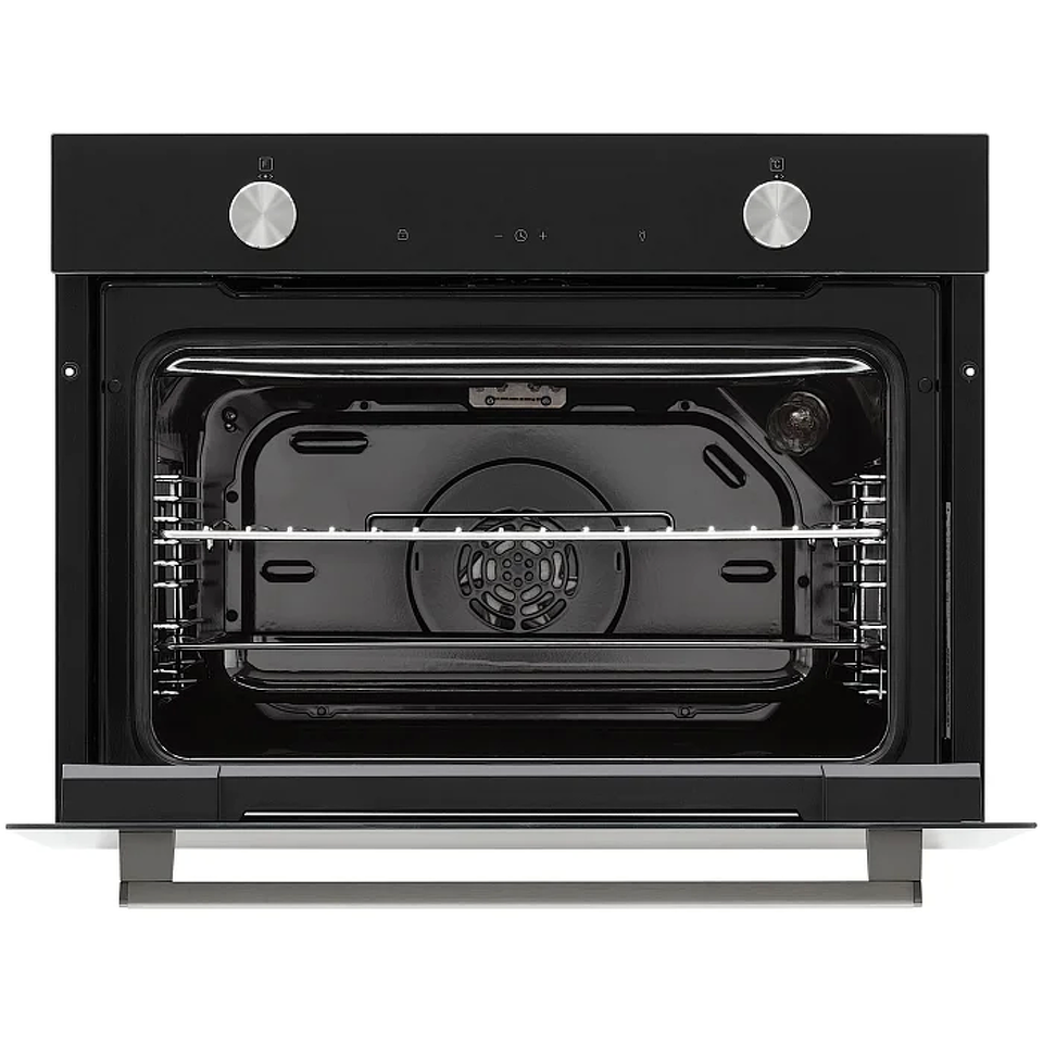 Компактный духовой шкаф PARABEL высотой встраивания 45 см выполнен из черного закаленного стекла с черной фурнитурой, что отлично подойдет для кухонь в стиле минимализм. Объем духовки составляет 50 л, благодаря чему можно готовить несколько блюд на разных уровнях одновременно. Модель оснащена 10 режимами работы, включая 3D-конвекцию, разморозку и электрический гриль, а также сенсорным дисплеем с электронным многофункциональным таймером и часами. Разнообразие программ и широкий диапазон температур нагрева 50-260°С позволяют воплотить самые смелые кулинарные идеи. Для быстрого и простого ухода за духовым шкафом предусмотрены функция очистки паром Aqua Clean, съемная разборная дверца и эмаль легкой очистки Easy Clean. В базовую комплектацию модели входит глубокий противень, решетка для гриля, а также монтажные элементы.
