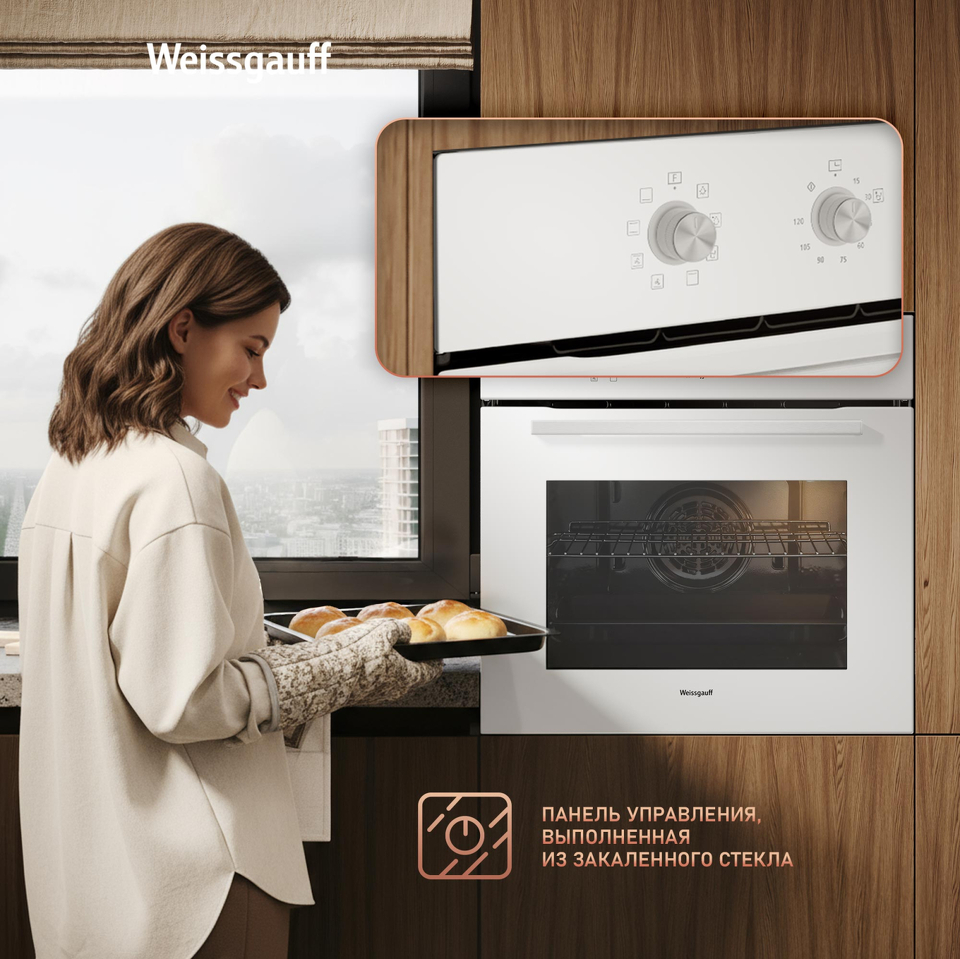 • Дизайн в белом цвете - станет финальным штрихом в совершенстве облика этой модели. Каждый раз, взаимодействуя с духовым шкафом от Weissgauff, вы будете в полной мере ощущать, как он способен нагревать не только еду, но и согревать душу, став настоящим сердцем вашего уютного домашнего очага