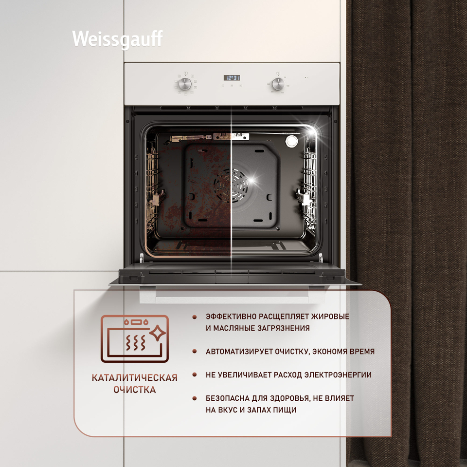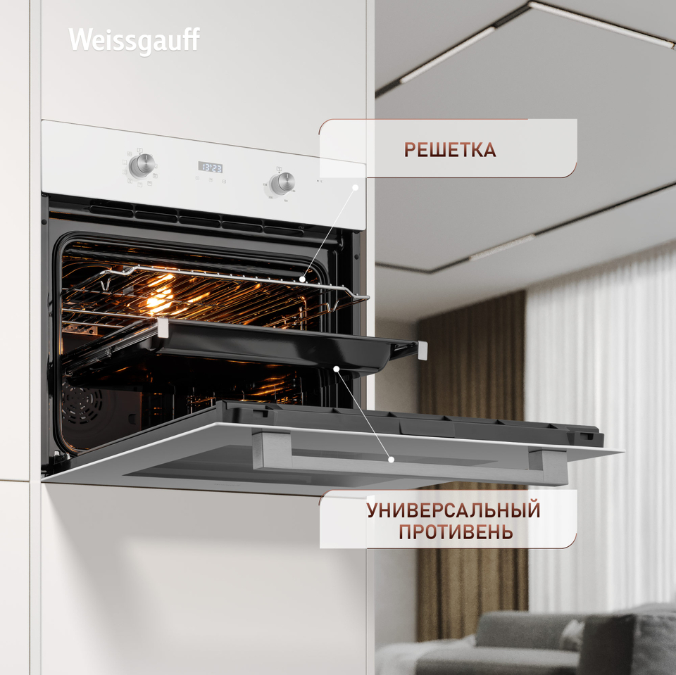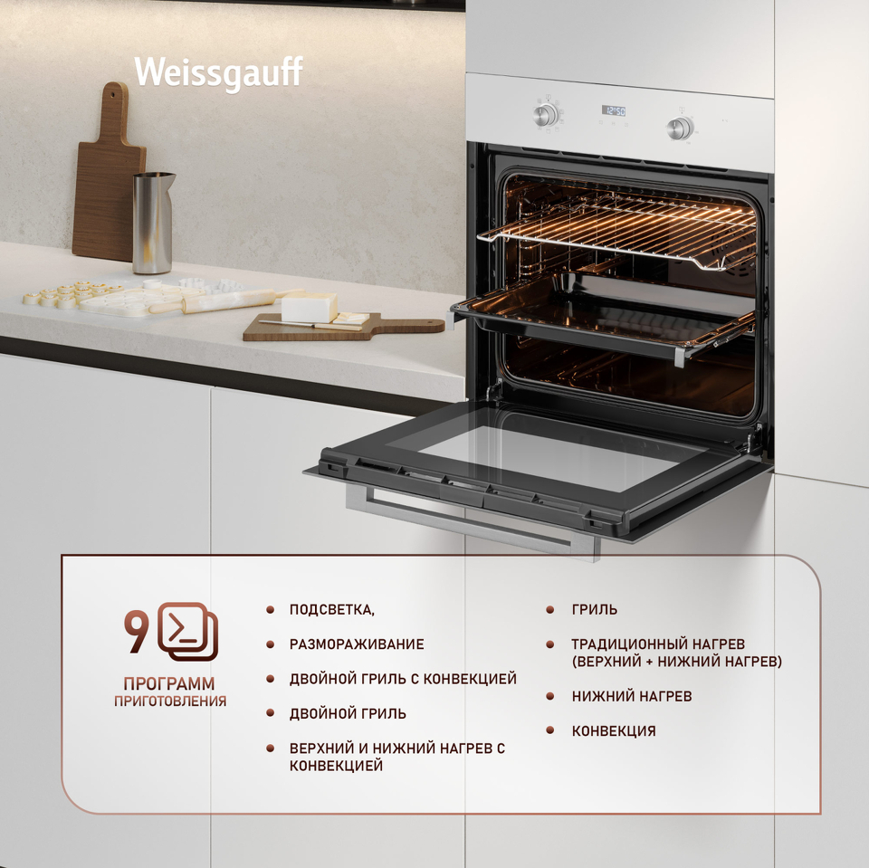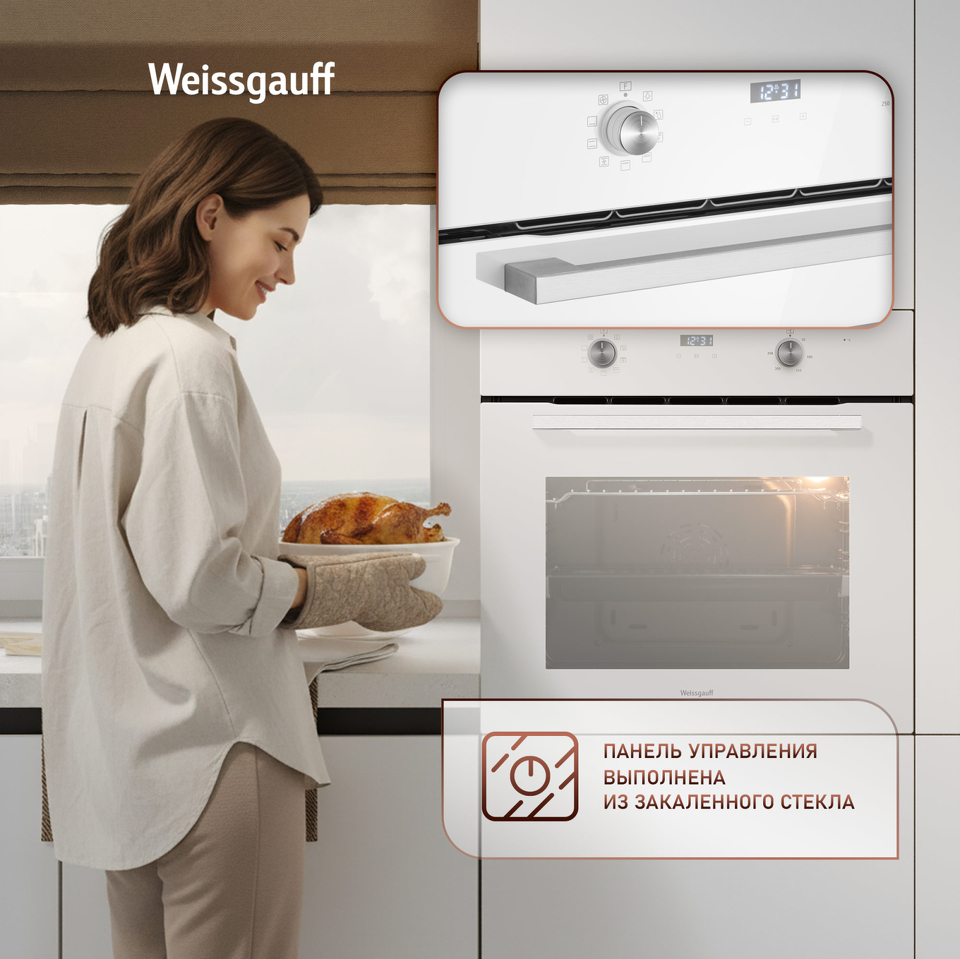 • Великолепный дизайн, станет финальным штрихом в совершенстве облика этой модели. Каждый раз, взаимодействуя с духовым шкафом от Weissgauff, вы будете в полной мере ощущать, как он способен нагревать не только еду, но и согревать душу, став настоящим сердцем вашего уютного домашнего очага.