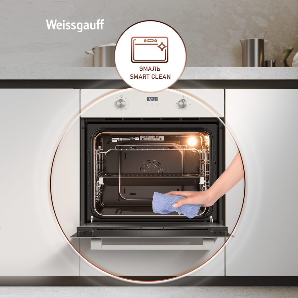 • Эмаль SMART CLEAN - это особое покрытие духового шкафа, призванное сделать процесс ухода за ним еще более простым и удобным. Благодаря эмали, изготовленной и нанесенной с применением сразу ряда инновационных технологий, ваш духовой шкаф будет оснащен самым настоящим высокоэффективным щитом, препятствующим накоплению жира, запаха и загрязнений, образующихся вследствие многократного приготовления еды.