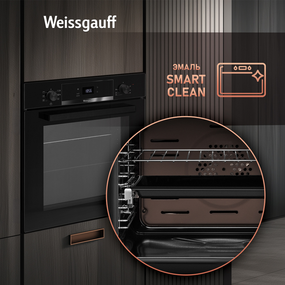 • Эмаль SMART CLEAN - это особое покрытие духового шкафа, призванное сделать процесс ухода за ним еще более простым и удобным. Благодаря эмали, изготовленной и нанесенной с применением сразу ряда инновационных технологий, ваш духовой шкаф будет оснащен самым настоящим высокоэффективным щитом, препятствующим накоплению жира, запаха и загрязнений, образующихся вследствие многократного приготовления еды.