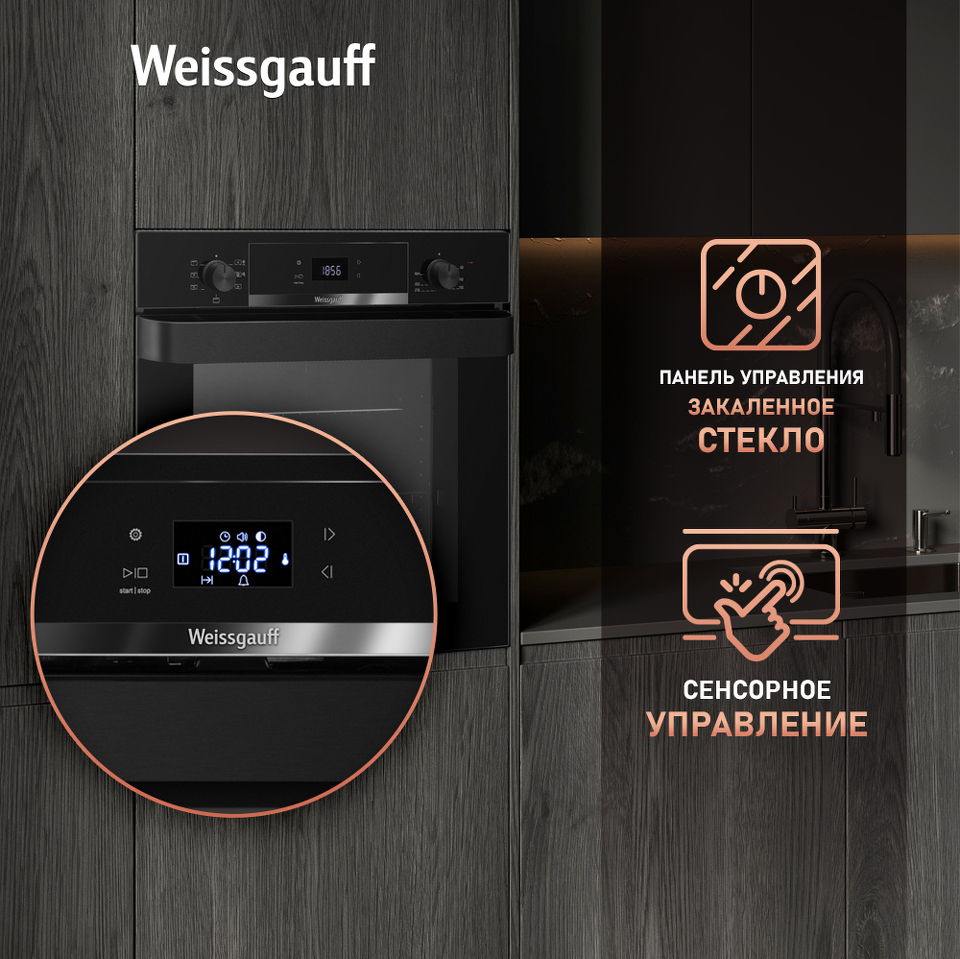 Великолепный дизайн, дополненный вставкой из стекла под дисплеем, станет финальным штрихом в совершенстве облика этой модели. Каждый раз, взаимодействуя с духовым шкафом от Weissgauff, вы будете в полной мере ощущать, как он способен нагревать не только еду, но и согревать душу, став настоящим сердцем вашего уютного домашнего очага