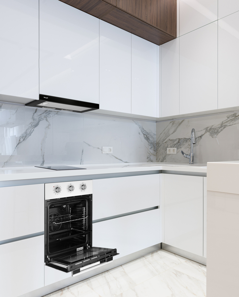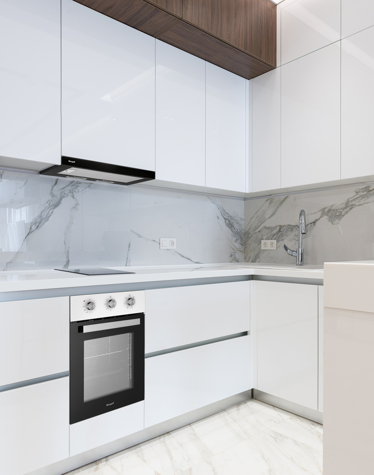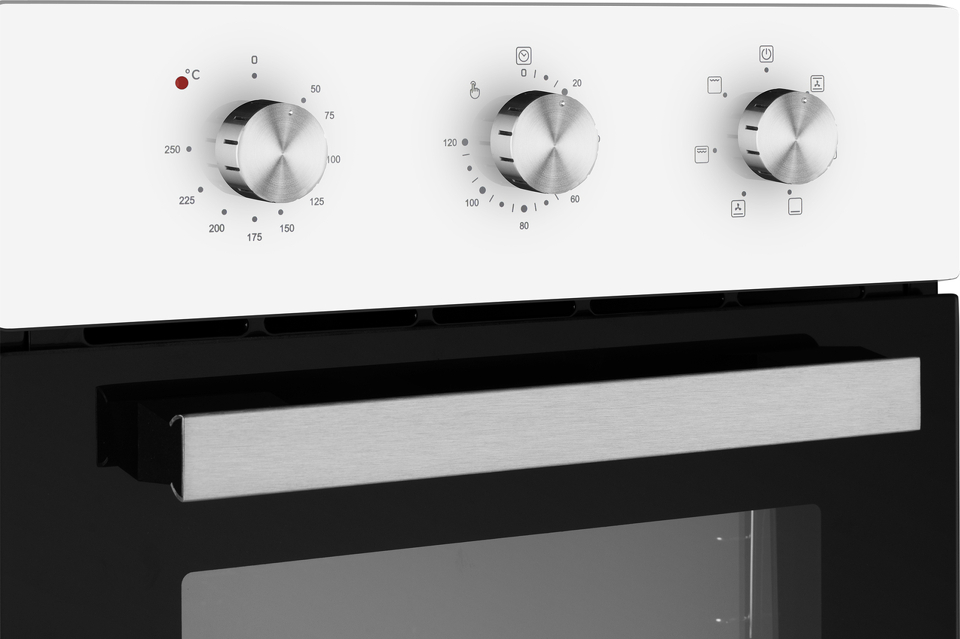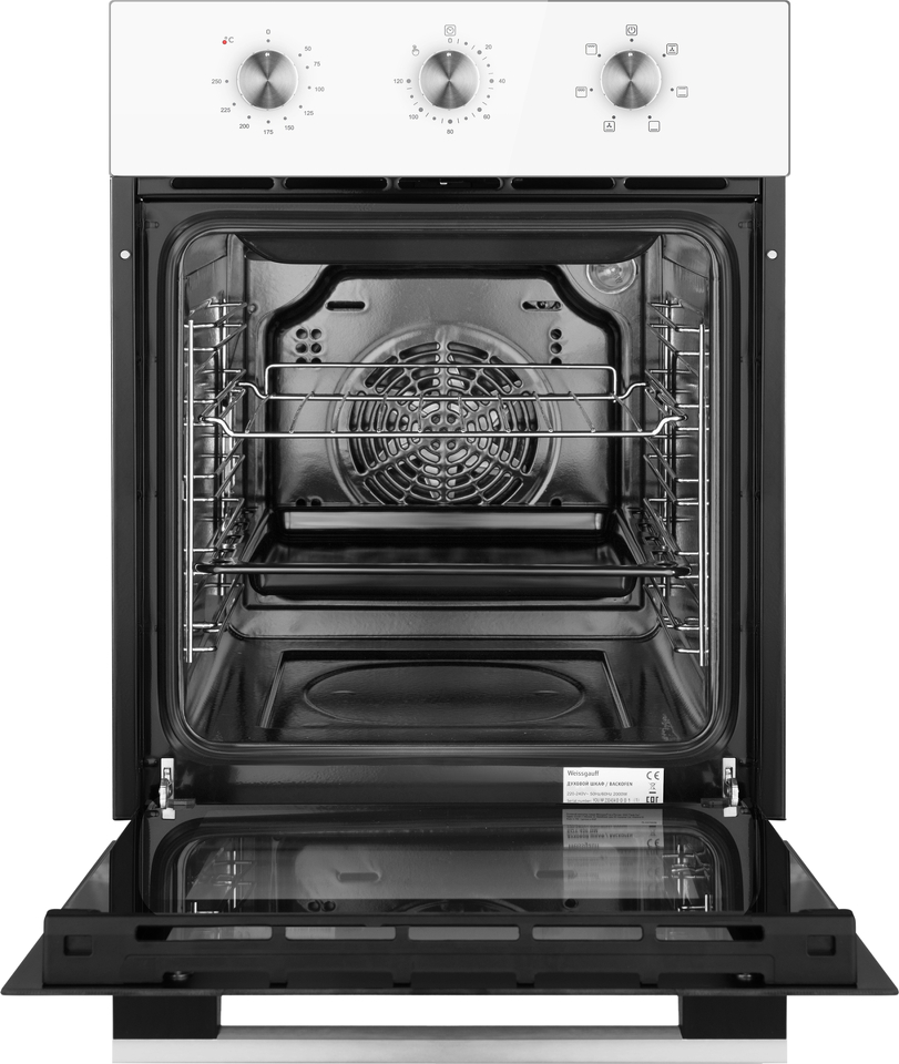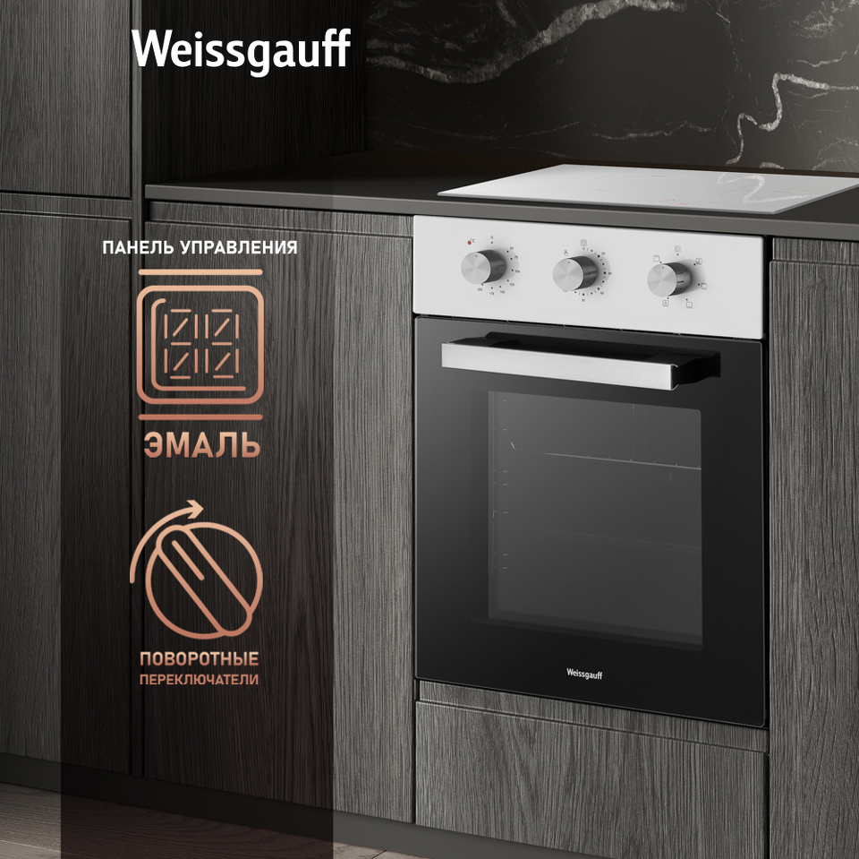 Компактный электрический духовой шкаф от Weissgauff шириной всего 45 см, выполненный в белом цвете, оснащён чувствительными поворотными рукоятками, грилем и конвекцией, позволяющей сделать распределение тепла в камере ещё более эффективным!