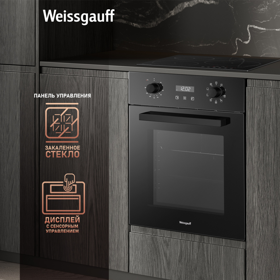 Объем 50 литров дает вам полную уверенность в том, что приобретая этот духовой шкаф, вы сможете разместить в нем сразу весь необходимый объем пищи, и даже профессионально работать на нескольких уровнях одновременно, порадовав себя и своих близких настоящим пиром, приготовленным в духовом шкафу Weissgauff на действительно ресторанном уровне.