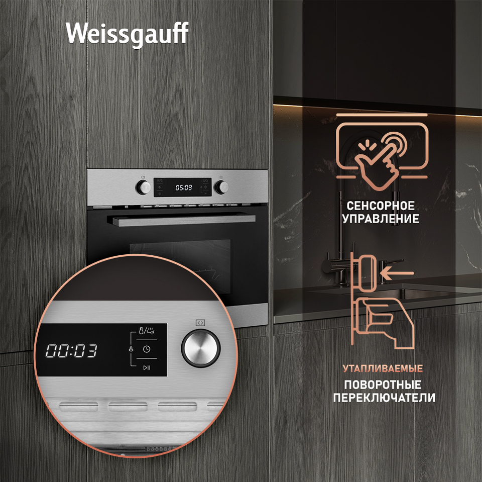 Удобный сенсорный дисплей с крупной индикацией - это настоящая гордость Weissgauff, ведь он не только является интуитивно понятным, но и великолепно реагирует на прикосновения с первого нажатия даже в том случае, если руки влажные или прохладные