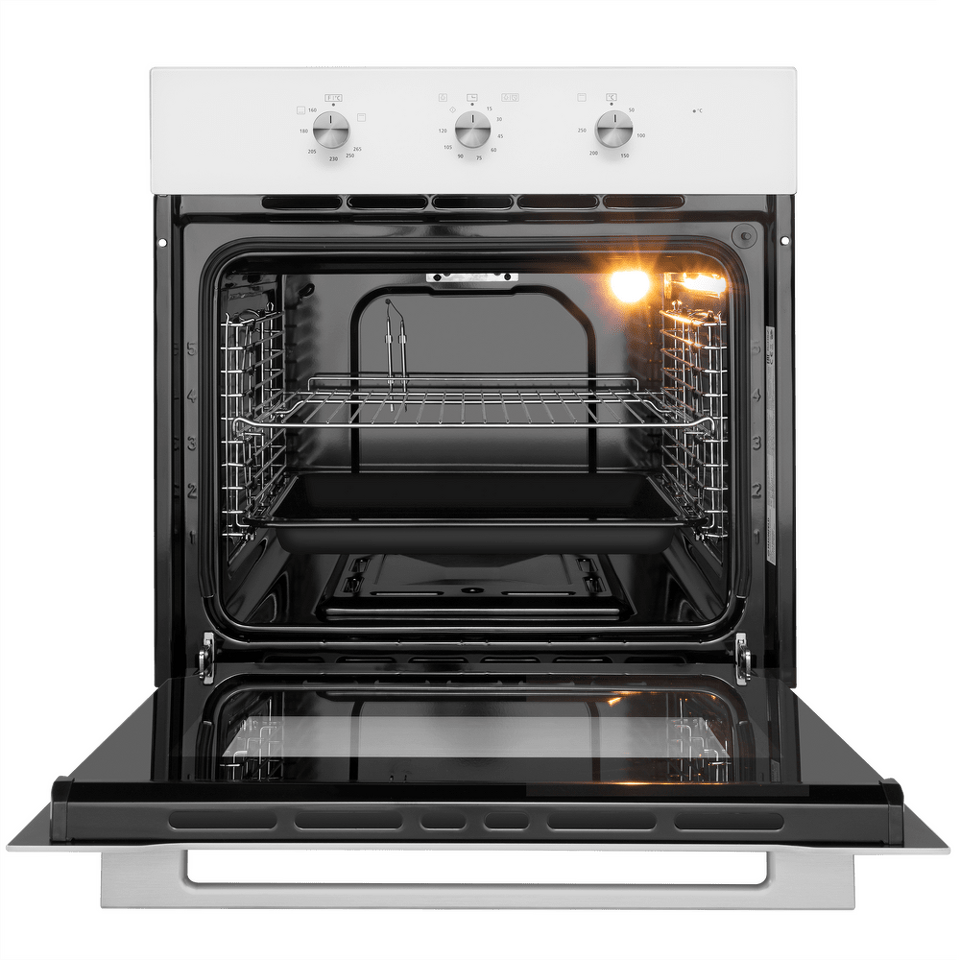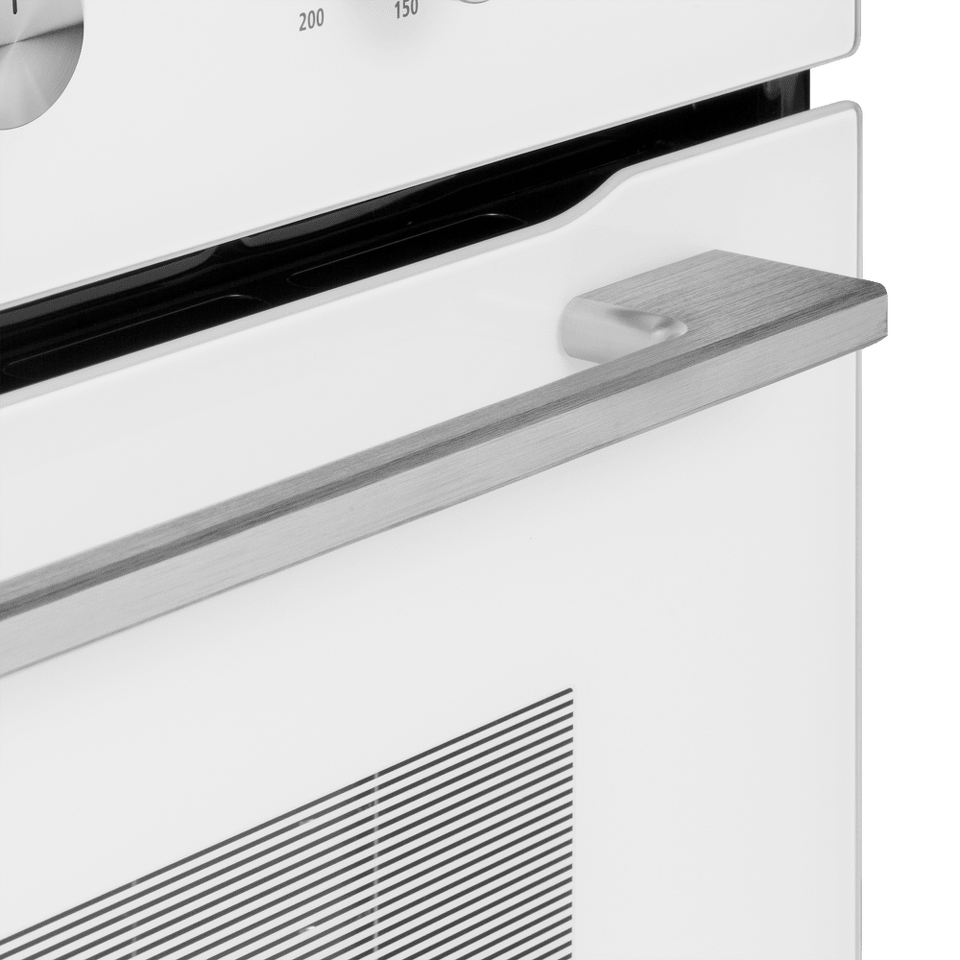 Фронтальная панель дверцы, лицевая часть блока управления сделаны из высококачественного жаропрочного стекла белого цвета, окрашенного по всему объему, что является отличительной чертой бытового прибора премиум-класса.