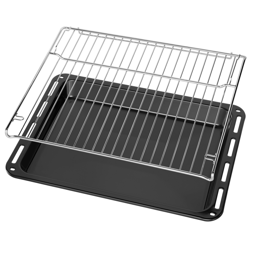 Объем 70 л при стандартной ширине 60 см позволяет готовить одновременно несколько блюд, разместив решетку или противень на одном из 5-ти уровней боковых направляющих. Внутреннее покрытие камеры выполнено из специальной легкоочищающейся эмали черного цвета.
