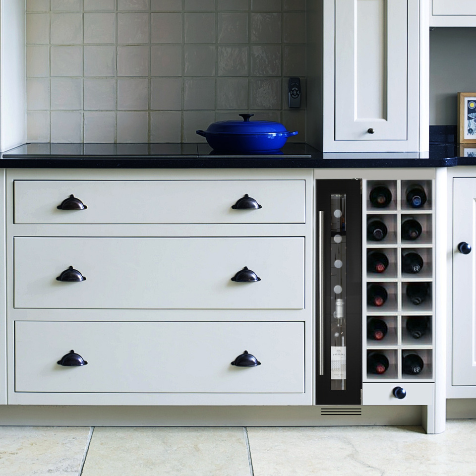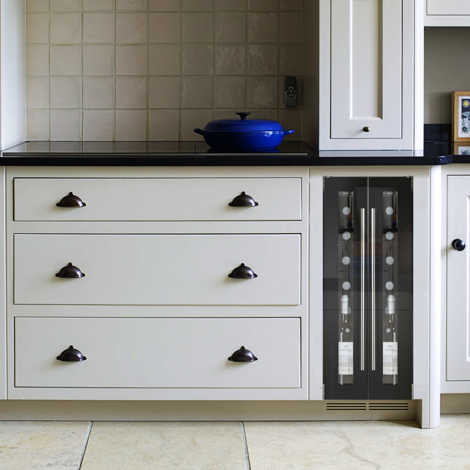 Двойное стекло с защитой от прямых УФ-лучей поддерживает качественные условия хранения вина.