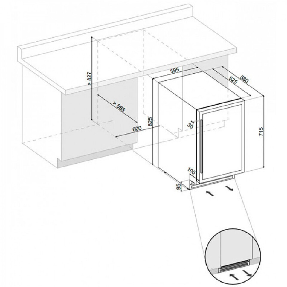 Винный шкаф Dunavox DX-51.150DSK/DP легко встраивается под столешницу или может устанавливаться отдельно. Охлаждение компрессора происходит через вентиляционные решетки внизу шкафа, что позволяет встраивать винный холодильник без зазоров.
