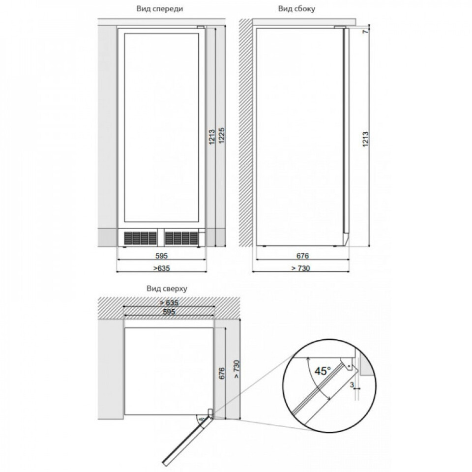 Компрессорный винный шкаф DX-94.270SDSK может быть встроен под столешницу и в нишу с соблюдением необходимых для охлаждения зазоров 2-5 см или использоваться как отдельностоящий. Охлаждение системы компрессора организовано через вентиляционные решетки внизу шкафа.