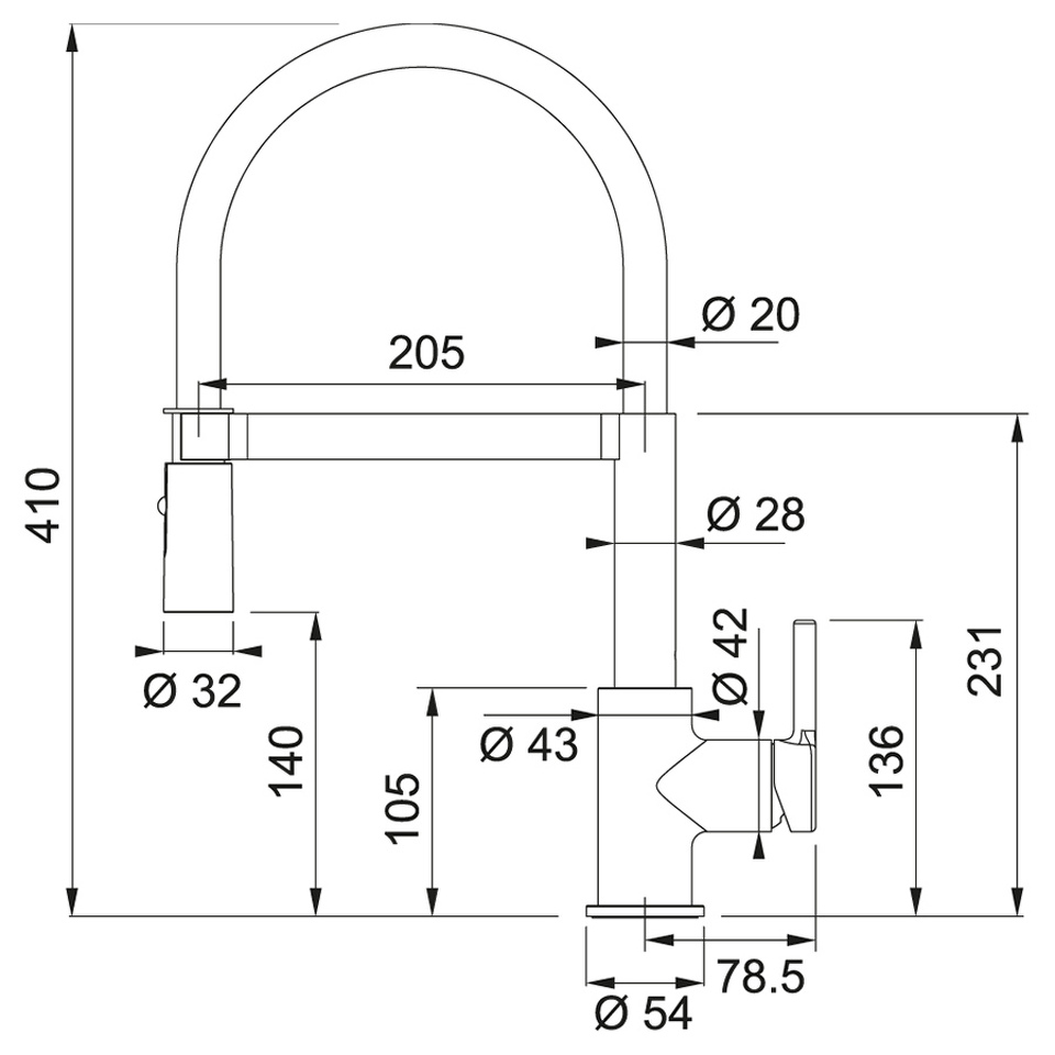 Высота излива, см 41