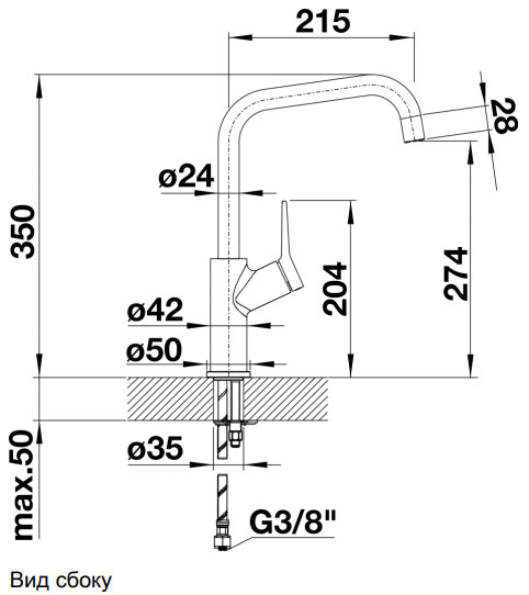 Высота излива, см 27.4