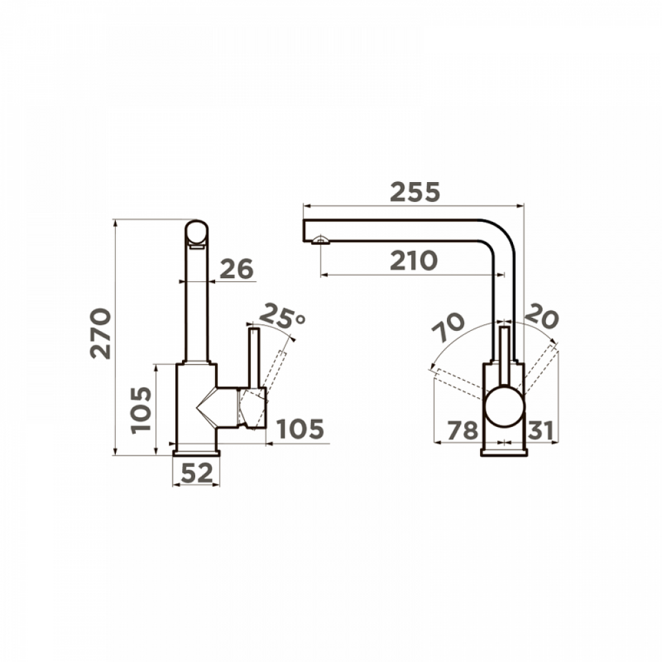• Практичный однорычажный смеситель выполнен в современном стиле и снабжен высоким поворотным изливом;