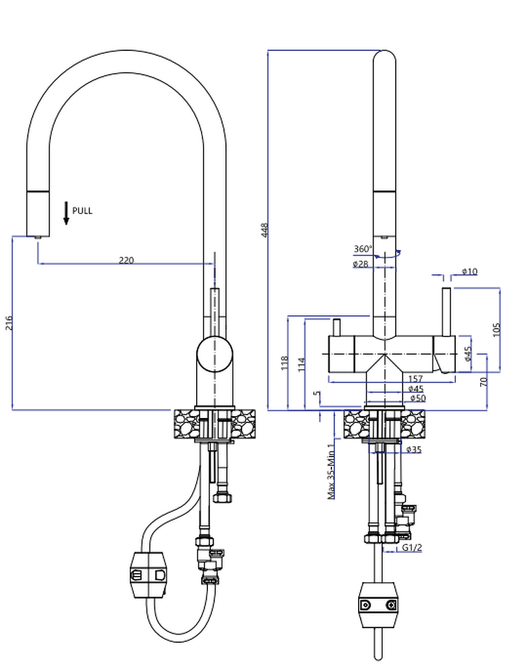 Rivelato Trevi U-обр. с краном питьевой воды и выдвижной лейкой D-35мм nero cromo