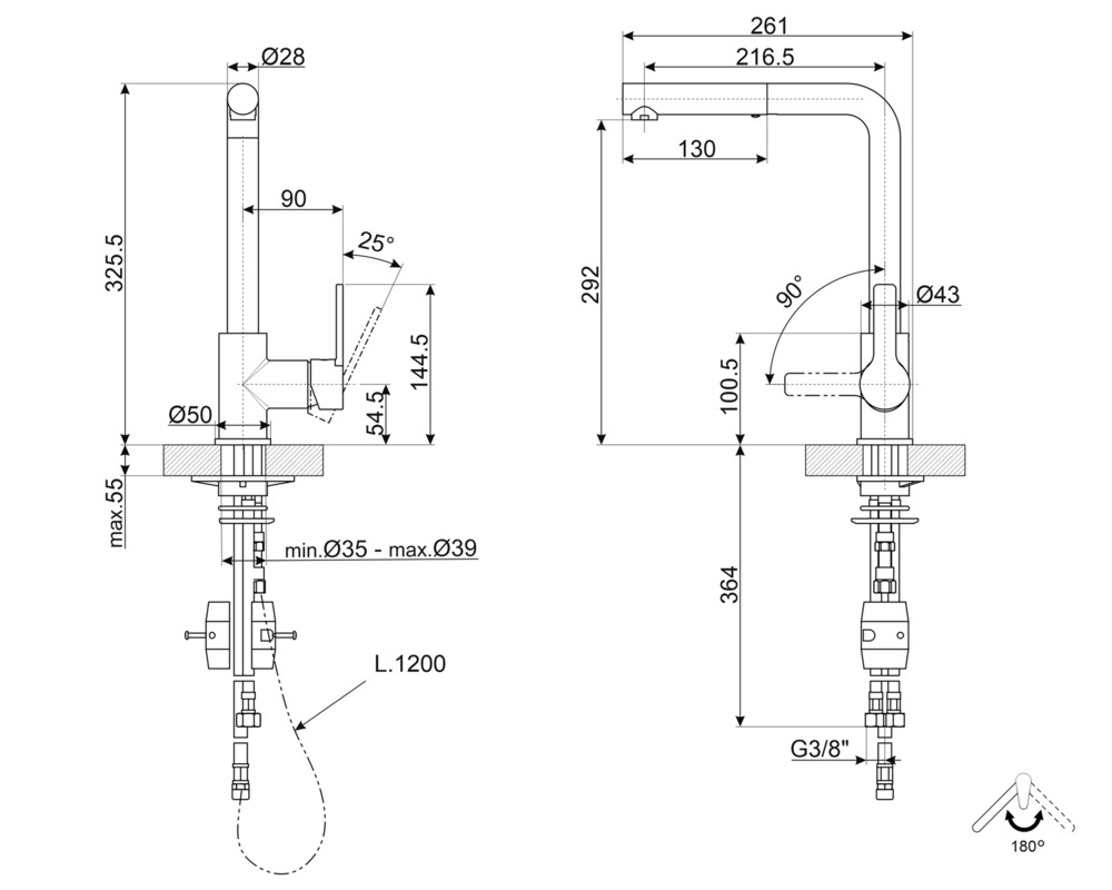 Высота излива, см 29.2
