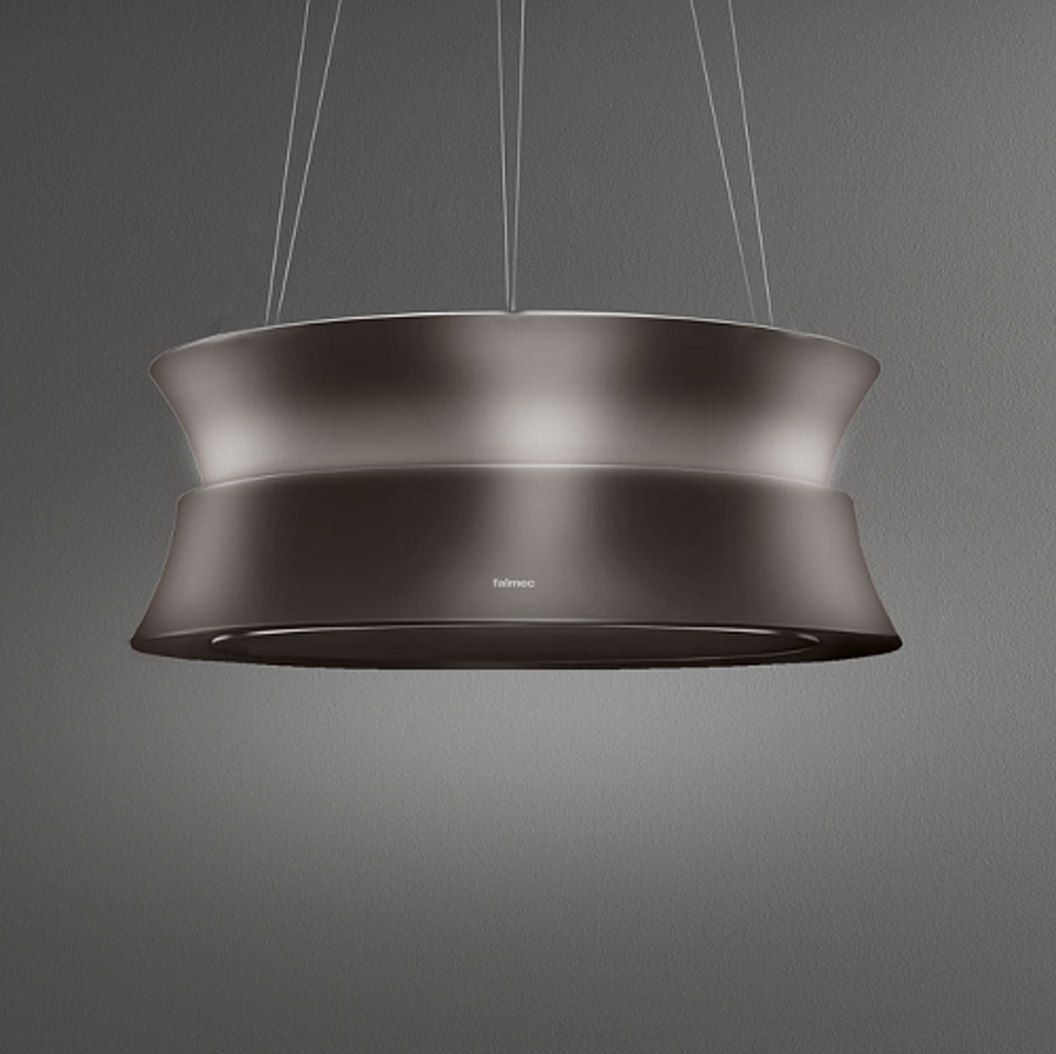 Дизайн. Вытяжка Falmec Circle.Tech DAMA isola 60 canna di fucile (600) производится из нержавеющей стали и представлена в цвете «оружейная сталь». В плоскости аспирации располагается панель из прозрачного закаленного стекла. Декоративная регулируемая подсветка и светодиодное освещение создают имитацию подвесной лампы.